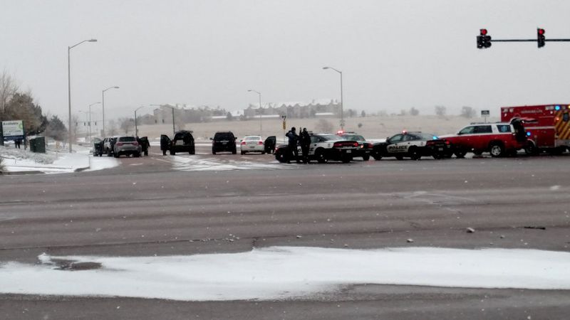 Police block the intersection of High Tech and Centennial