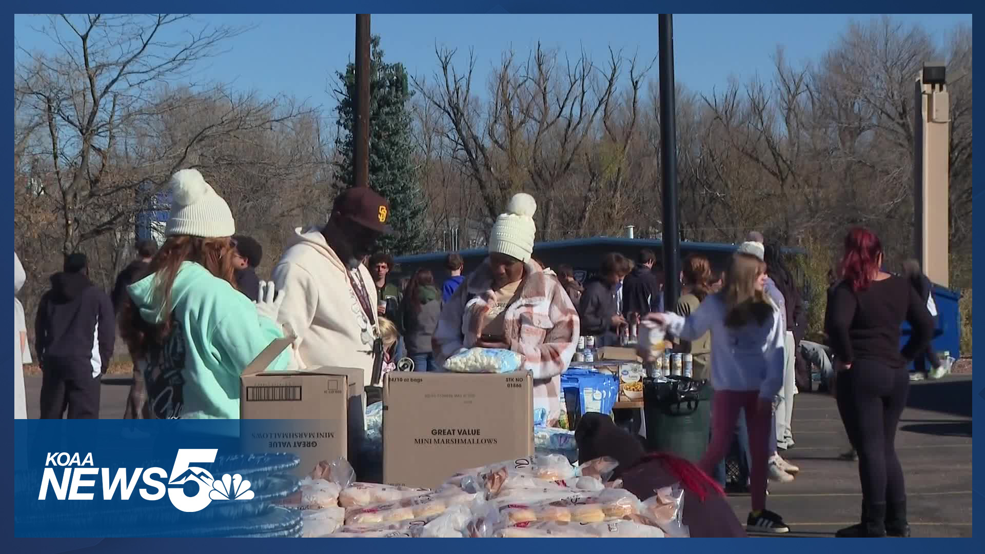 COLORADO SPRINGS, Colo. (KOAA) — Volunteers were packing up Thanksgiving meal kits for people in need in Colorado Springs today. They're filling them up with all the Thanksgiving essentials — turkey, mashed potatoes, gravy, stuffing and pumpkin pie to name a few.