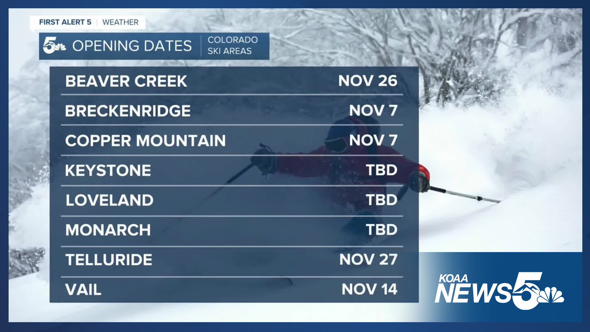 This is a developing story. News5 will continue to update this web story as more ski resorts set their opening date.