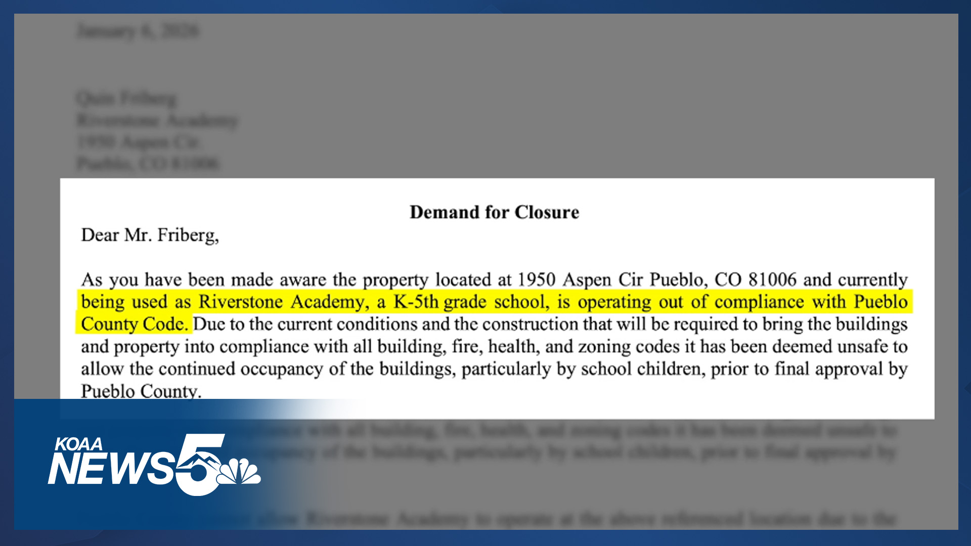 News5 asked Pueblo County for a response to the school's attorney's letter. The county says they have not filed a motion for an emergency injunction in court and has been communicating with Riverstone Academy.