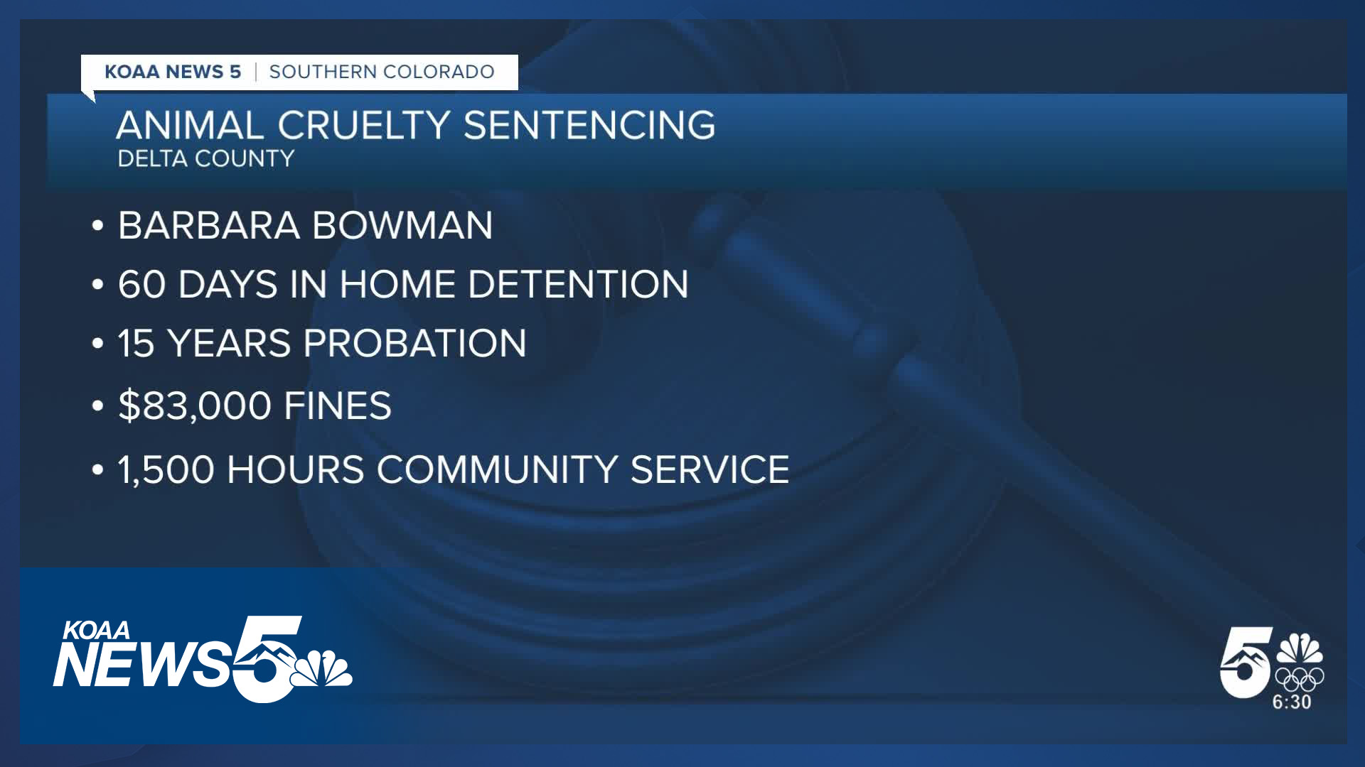 DELTA COUNTY, Colo. (KOAA) — A Colorado woman who pleaded guilty to 15 of more than 250 counts of misdemeanor animal cruelty learned her punishment Monday.