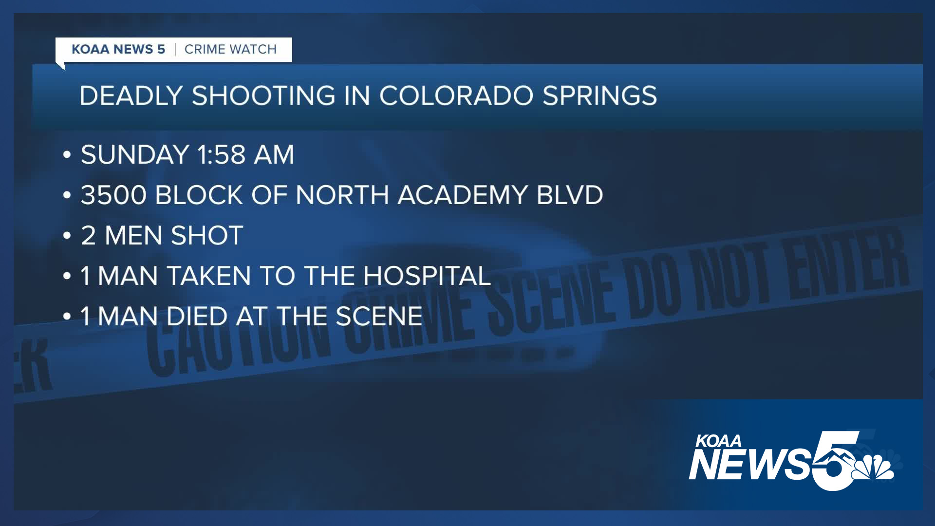 COLORADO SPRINGS, Colo. (KOAA) — Around 2:00 a.m. on Sunday, officers with the Colorado Springs Police Department (CSPD) were sent to the 3500 block of North Academy Boulevard to investigate a shooting.
