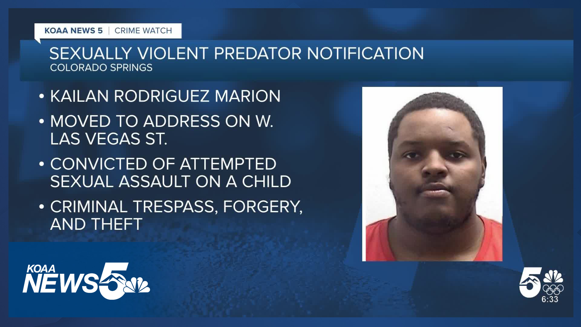 CSPD says Marion's past behavior has led him to be labeled as a SVP. He was convicted of the following incidents:
