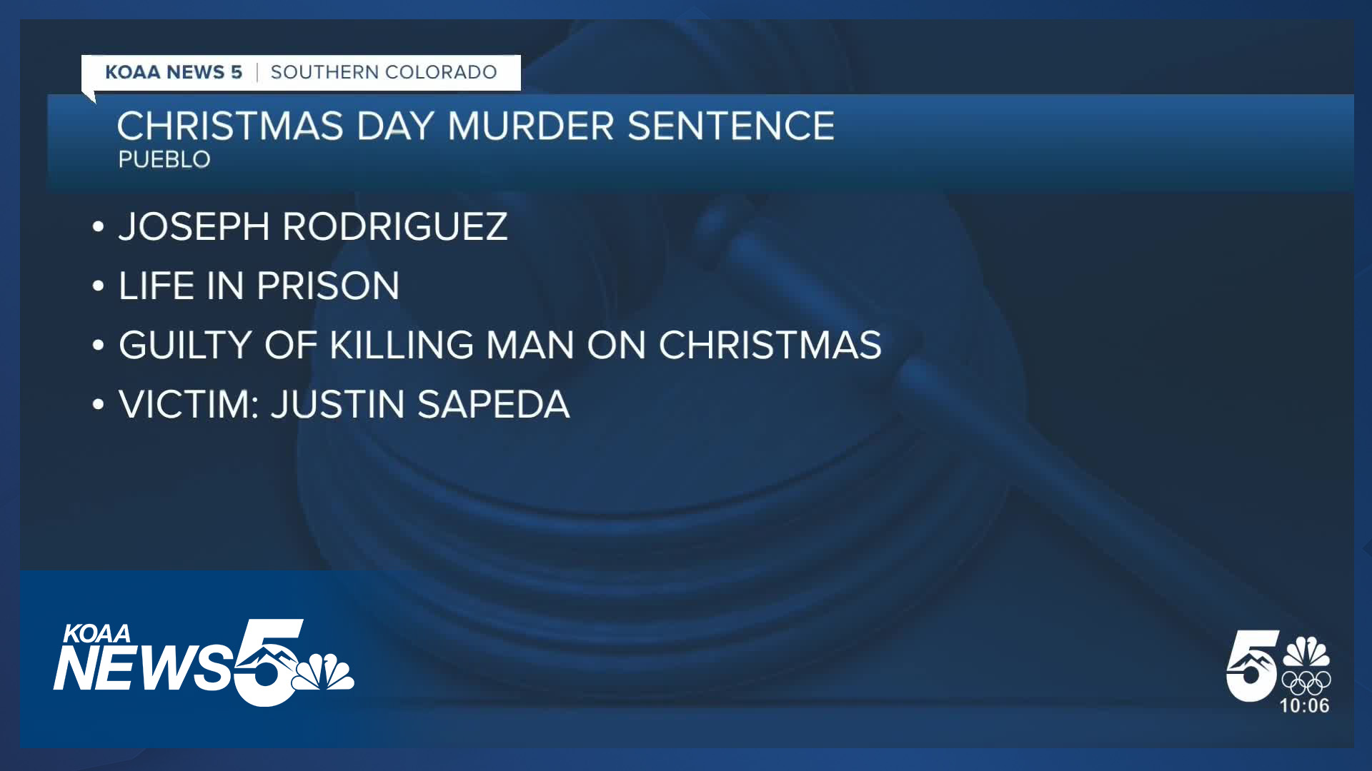 PUEBLO, Colo. (KOAA) — A man is facing a life sentence in connection to a Christmas Day murder in Pueblo last year, according to the 10th Judicial District Attorney's Office.