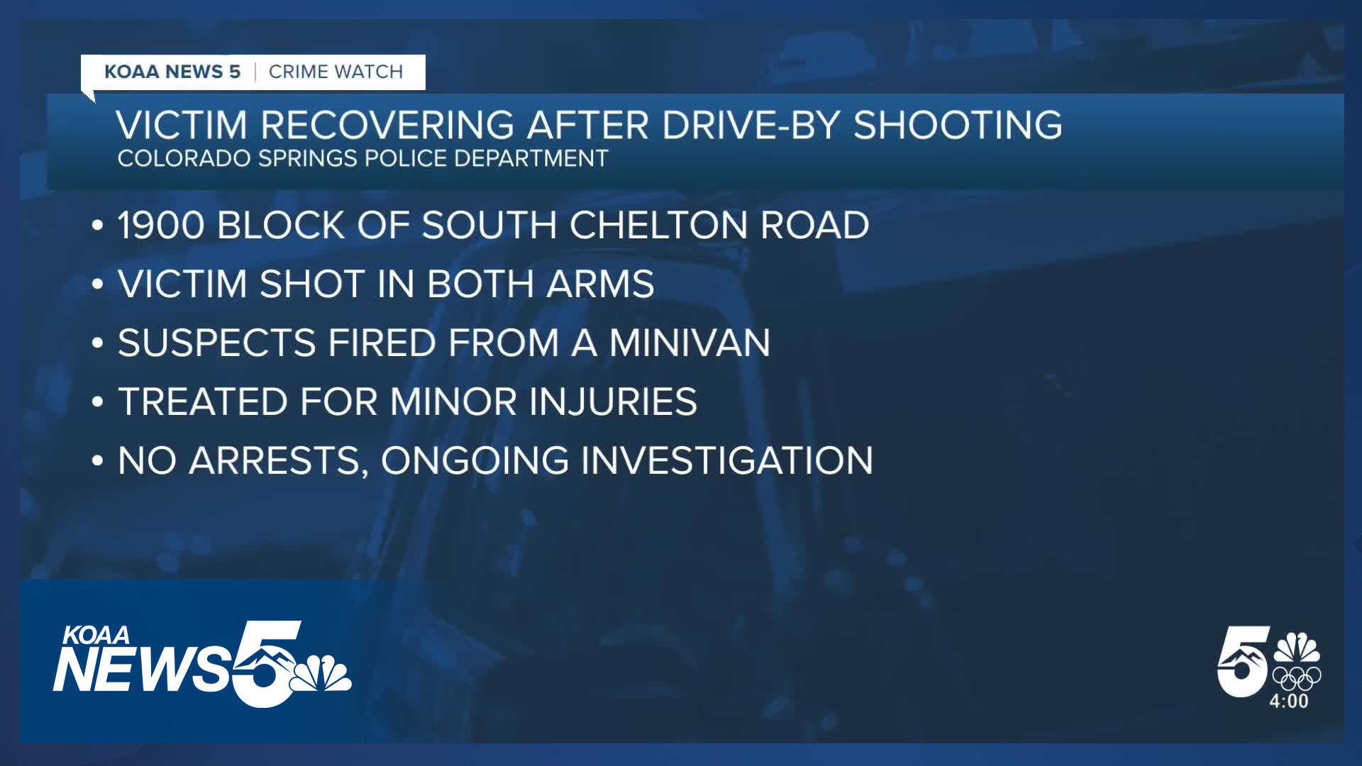 CSPD revealed during the investigation that people in a light-colored minivan drove by the victim and fired two shots from a shotgun.