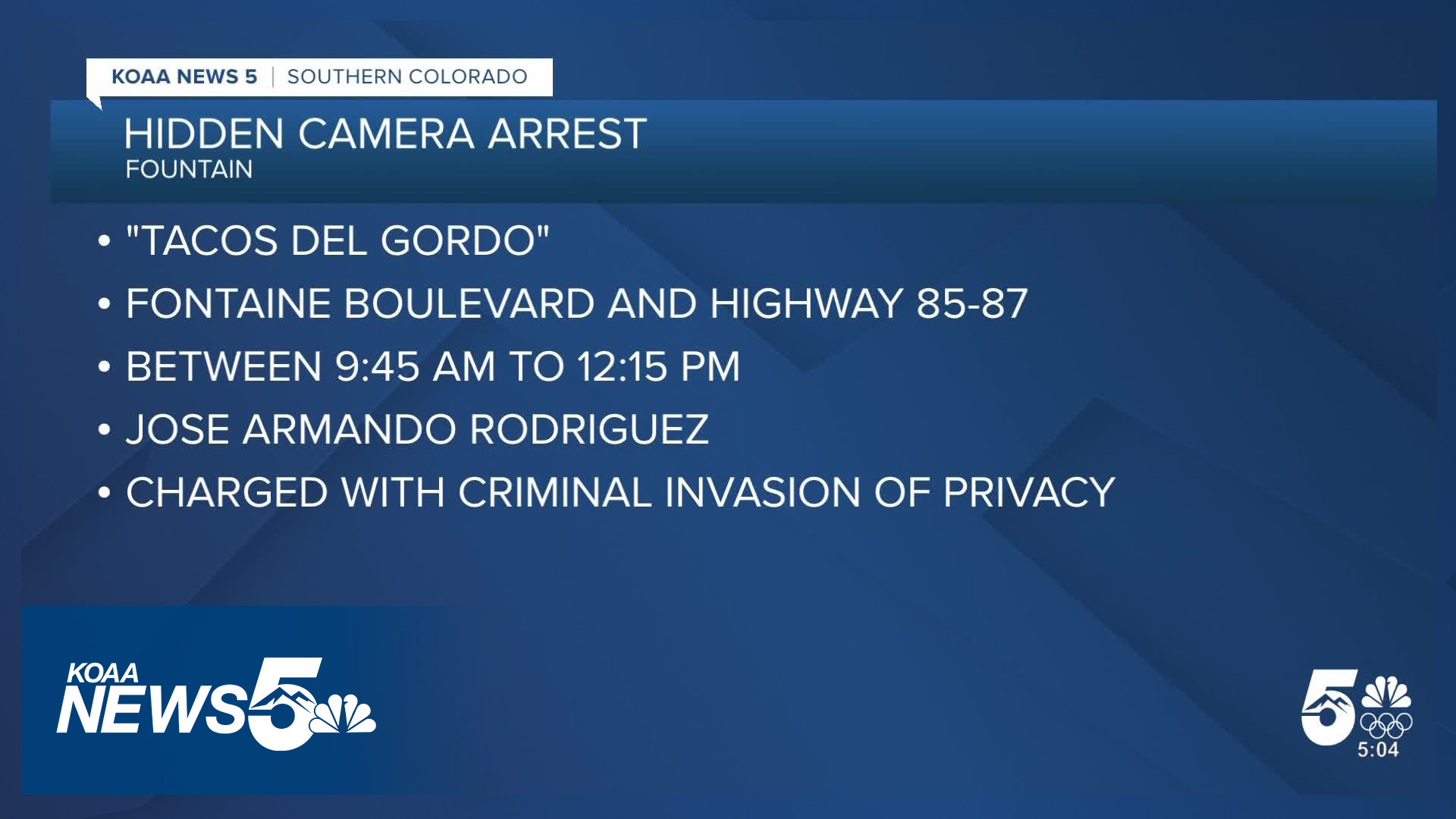 FOUNTAIN, Colo. (KOAA) — One man was arrested and charged on Tuesday, December 9, for allegedly recording in the women's restroom.