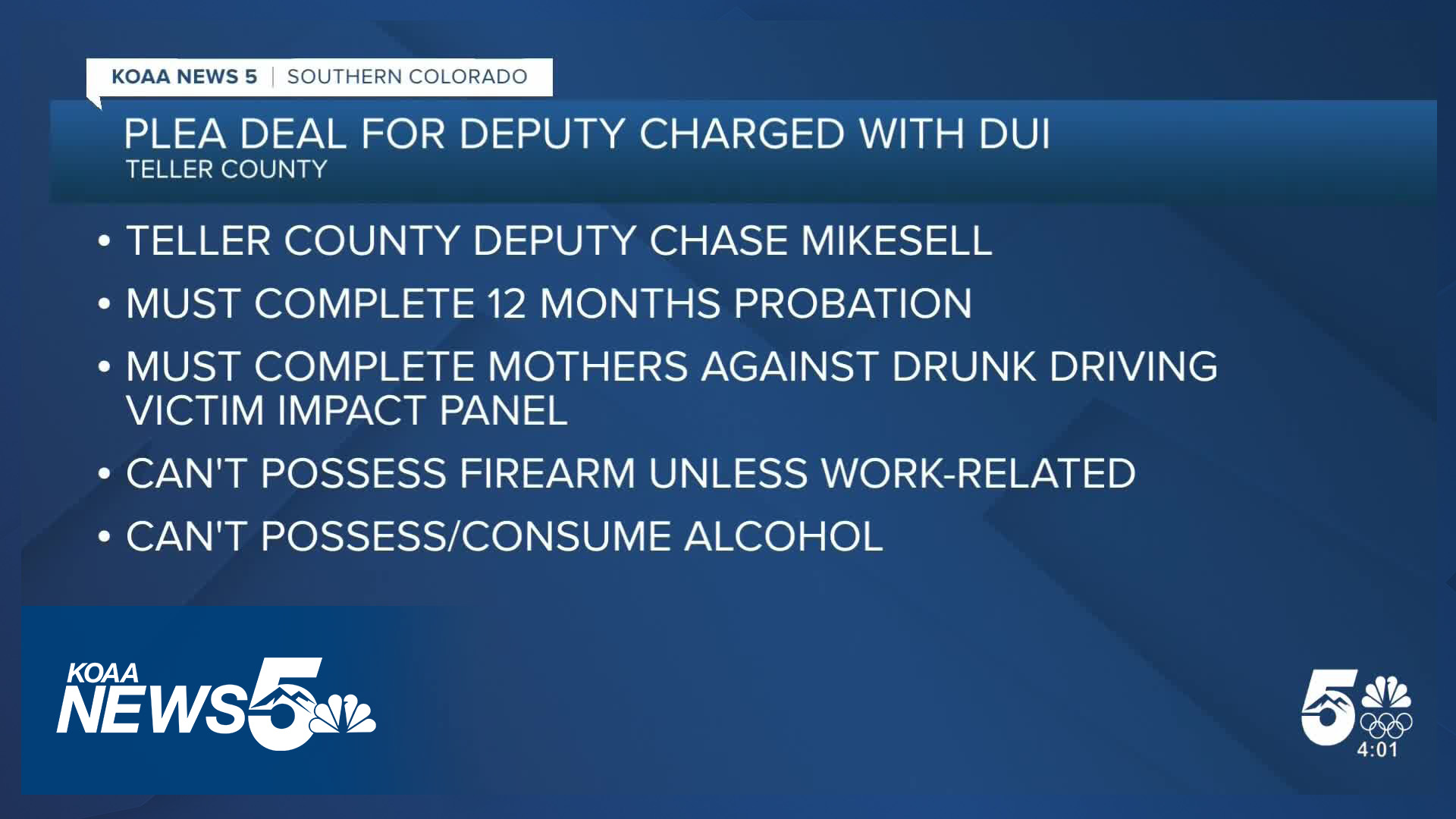 TELLER COUNTY, Colo. (KOAA) — Chase Mikesell, a deputy with the Teller County Sheriff's Office and the son of Teller County Sheriff Jason Mikesell, has pleaded guilty to DUI.