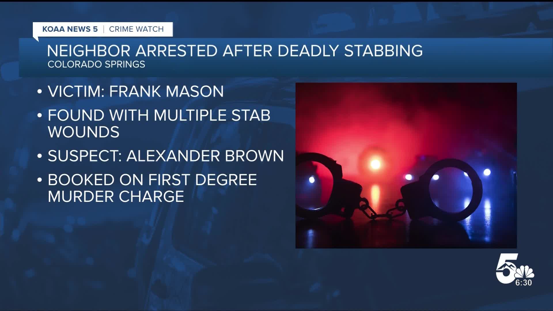 The alleged suspect was Mason's neighbor, 32-year-old Alexander Brown. Police say he was taken into custody without incident, and he is being charged with murder in the first degree.