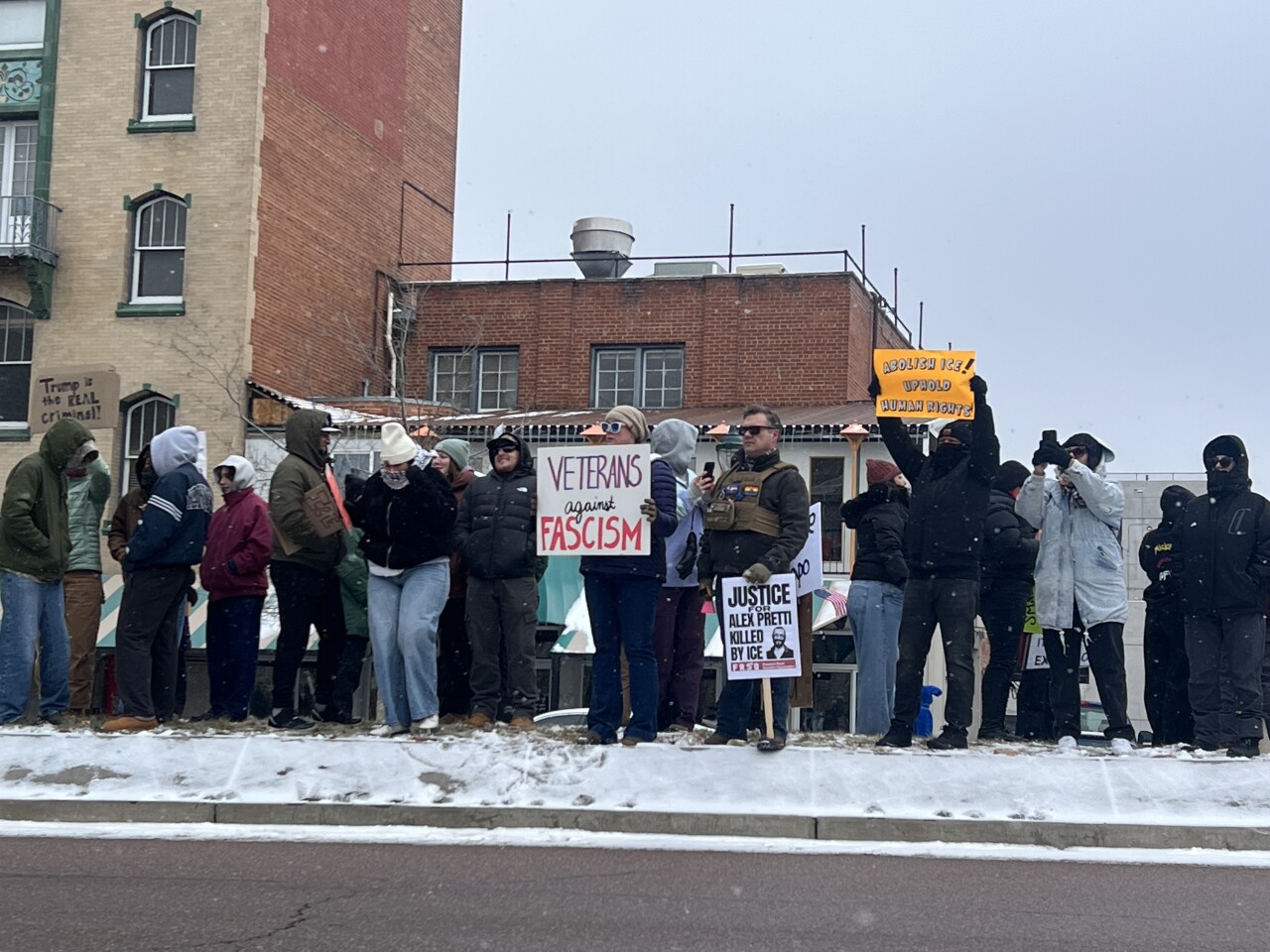 The demonstration drew participants from across the political spectrum, including the former vice chair of the Republican Party in El Paso County, Karl Schneider, who criticized the current administration's immigration enforcement tactics.
