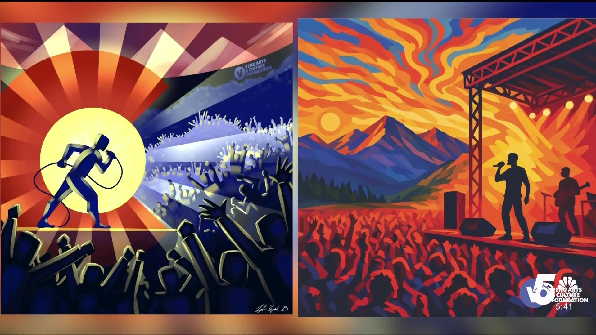 The VENU Arts and Culture Foundation unveiled the two mural designs on Tuesday morning. The murals were commissioned through a statewide open call for artists. Creatives from across disciplines submitted original work inspired by the energy of live music, the spirit of Colorado, and the connection between fans and the stage.