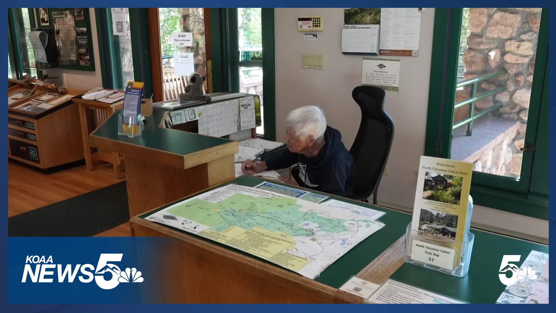 At the mouth of Cheyenne Cañon, at the front desk inside the Starsmore Discovery Center, Betty McCord welcomes visitors. The 96-year-old woman, who has hiked all of Colorado's fourteeners, gives advice on the best trails in the park.