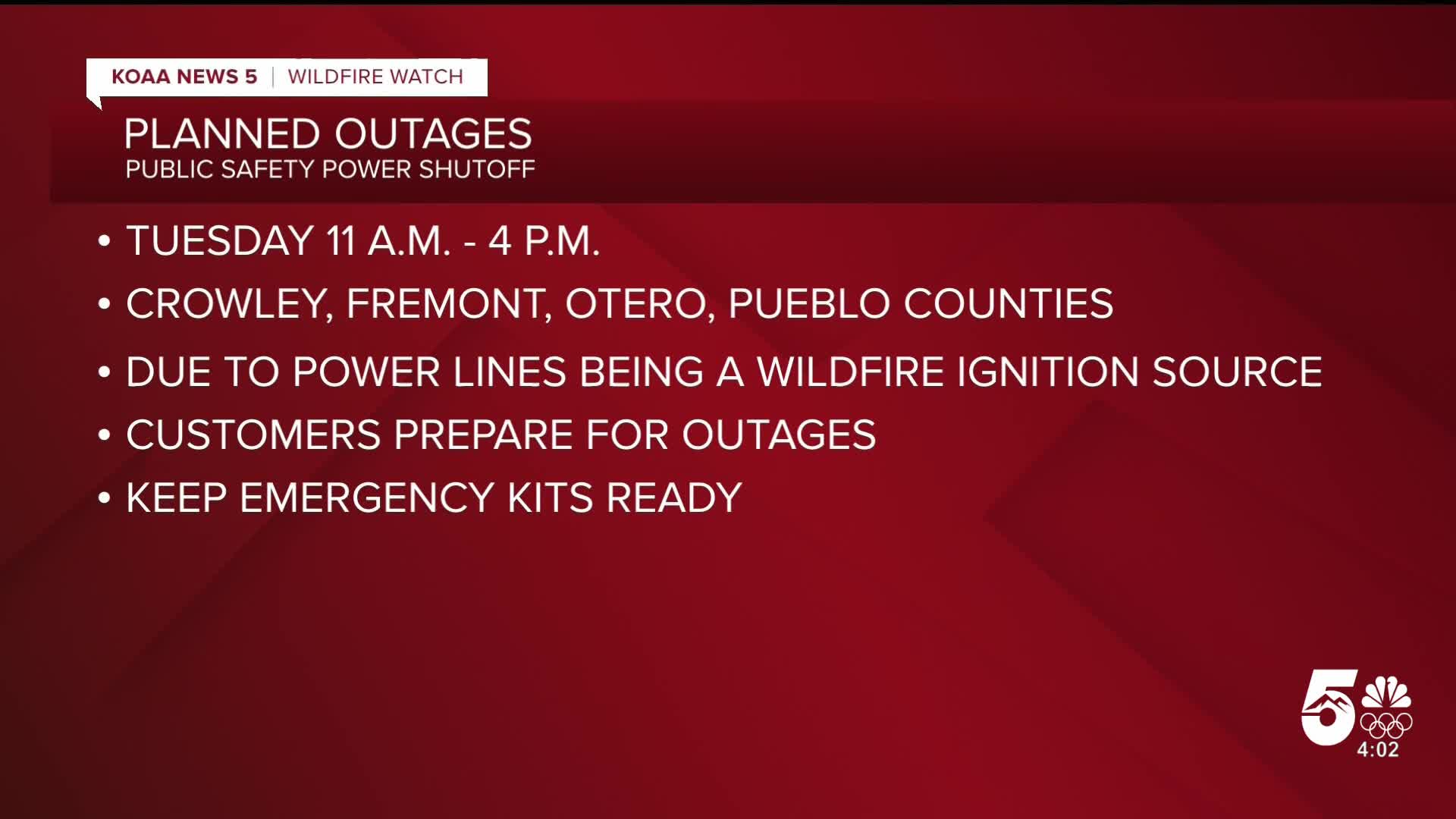 PUEBLO COUNTY, Colo. (KOAA) — Residents in Pueblo, Crowley, Otero, and Fremont Counties should prepare for a potential energy blackout on Tuesday as Black Hills Energy says they are monitoring high fire conditions.