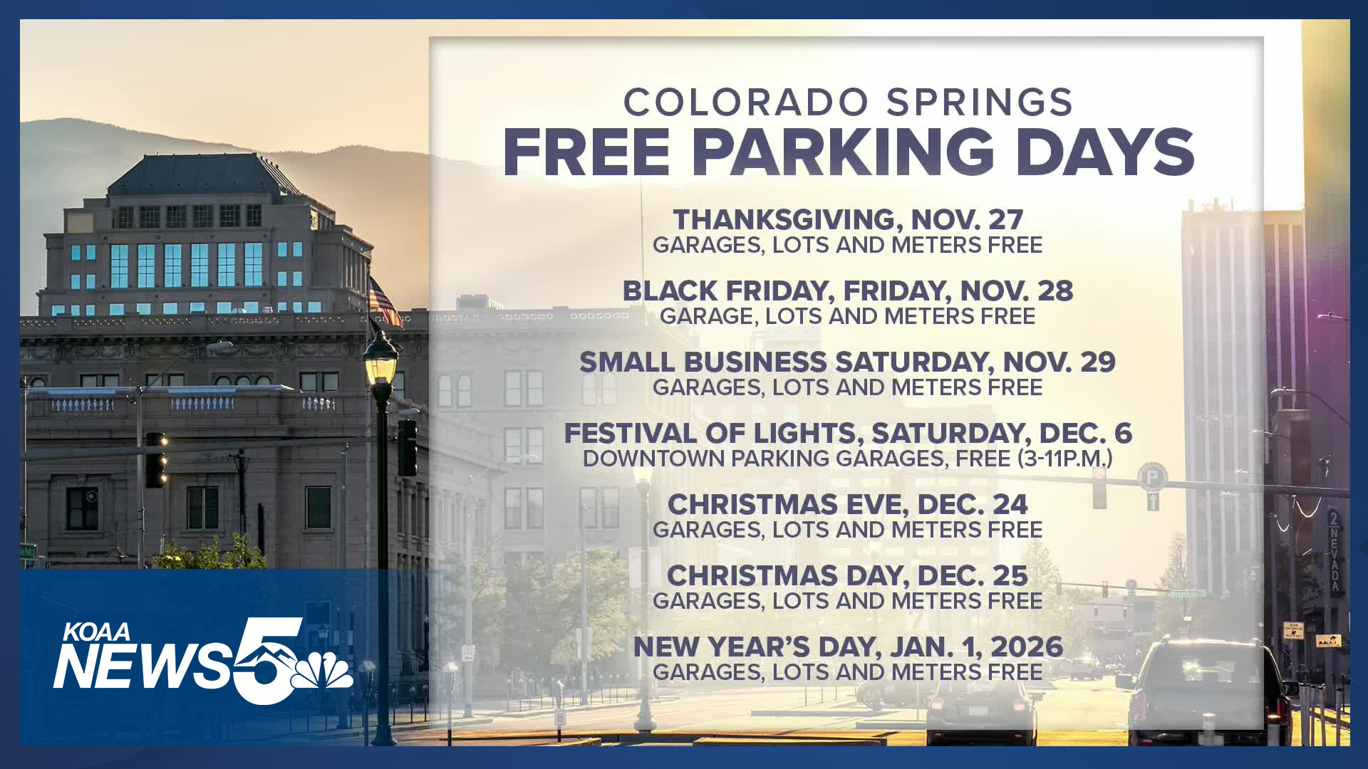 COLORADO SPRINGS, Colo. (KOAA) — If you're looking to head Downtown or to Old Colorado City this holiday season, the City of Colorado Springs has released a list of parking specials to help you save a few bucks on your trip.