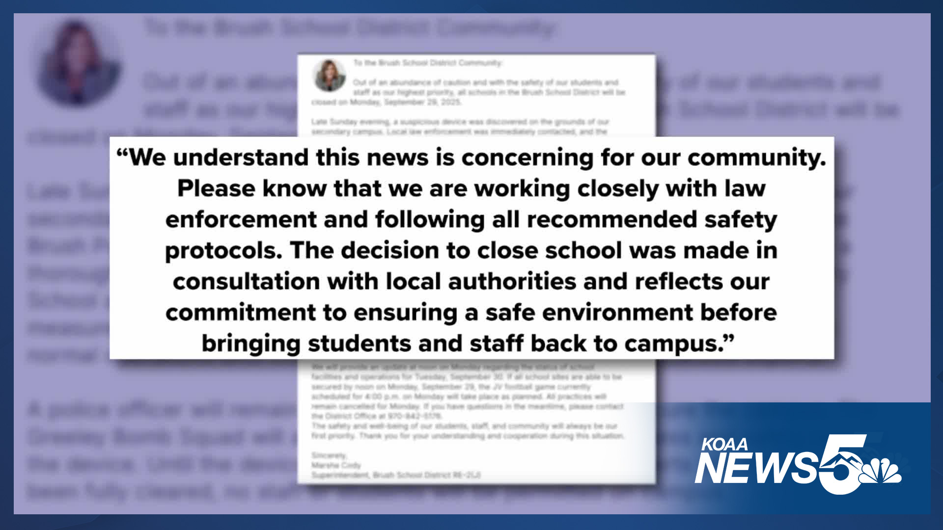 "Out of an abundance of caution and with the safety of our students and staff as our highest priority, all schools in the Brush School District will be closed on Monday, September 29, 2025.