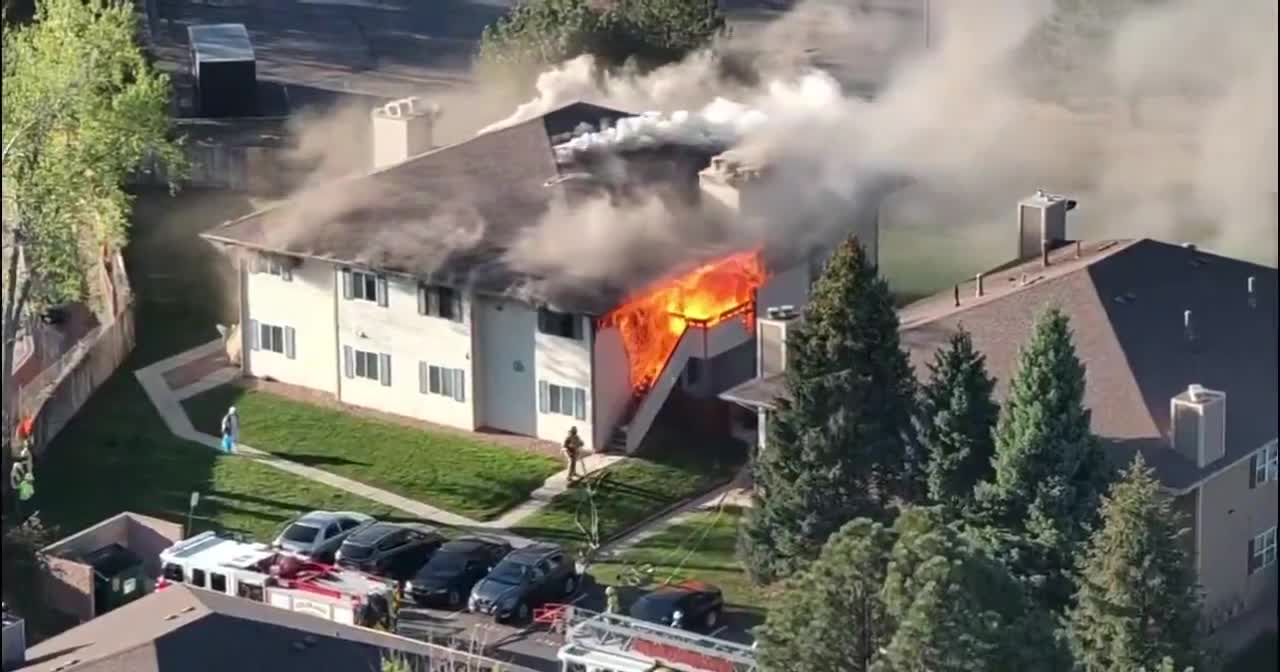 Video shared by the Colorado Springs Fire Department shows an apartment complex with large flames coming out of it.