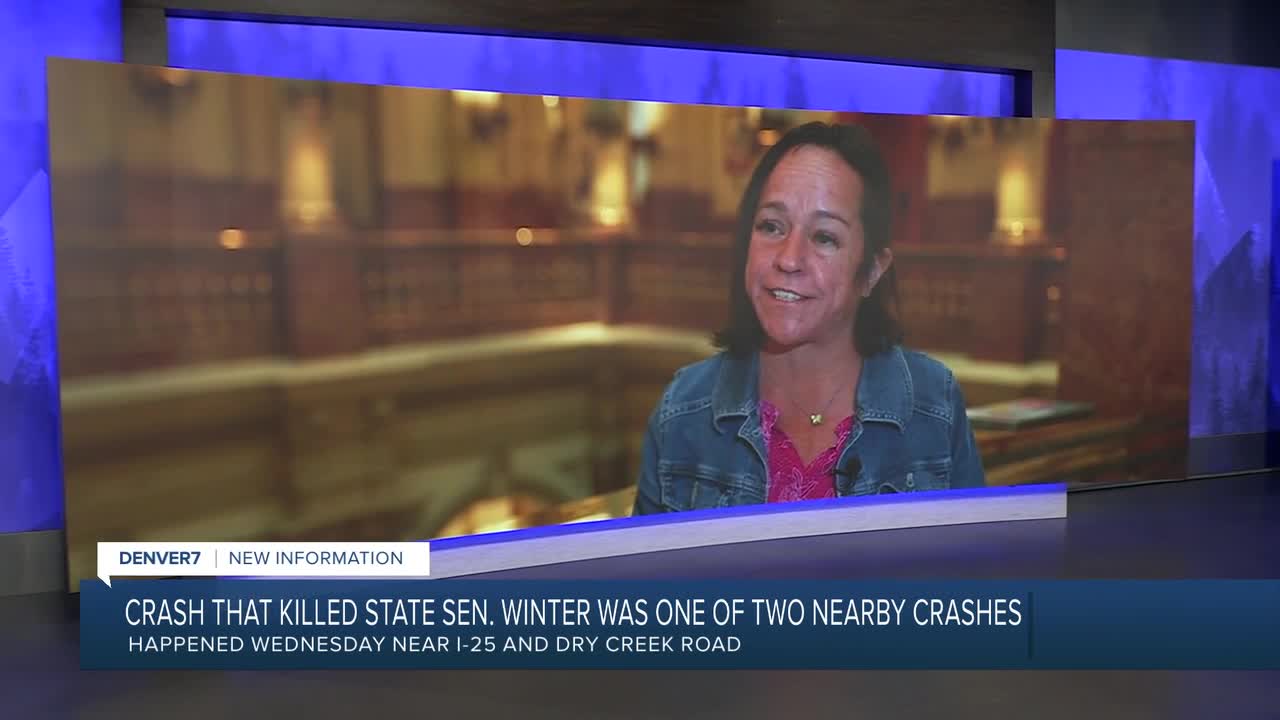 State Sen. Faith Winter was involved in a three-car crash near I-25 and Dry Creek Road at around 6 p.m. on Nov. 26. Another crash nearby involved two other vehicles.