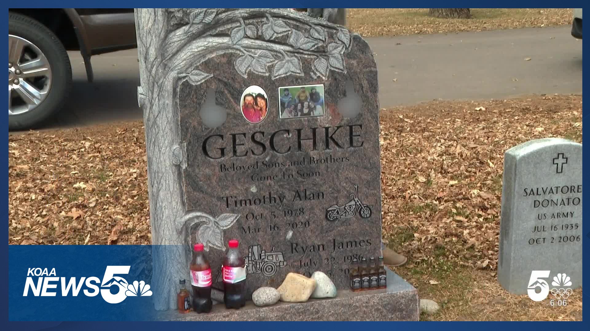 The Geschke family contacted News5 after discovering black tape covering parts of their brothers' headstone at Evergreen Cemetery. The cemetery's manager said the headstone contains "inappropriate images" that violate cemetery rules.
