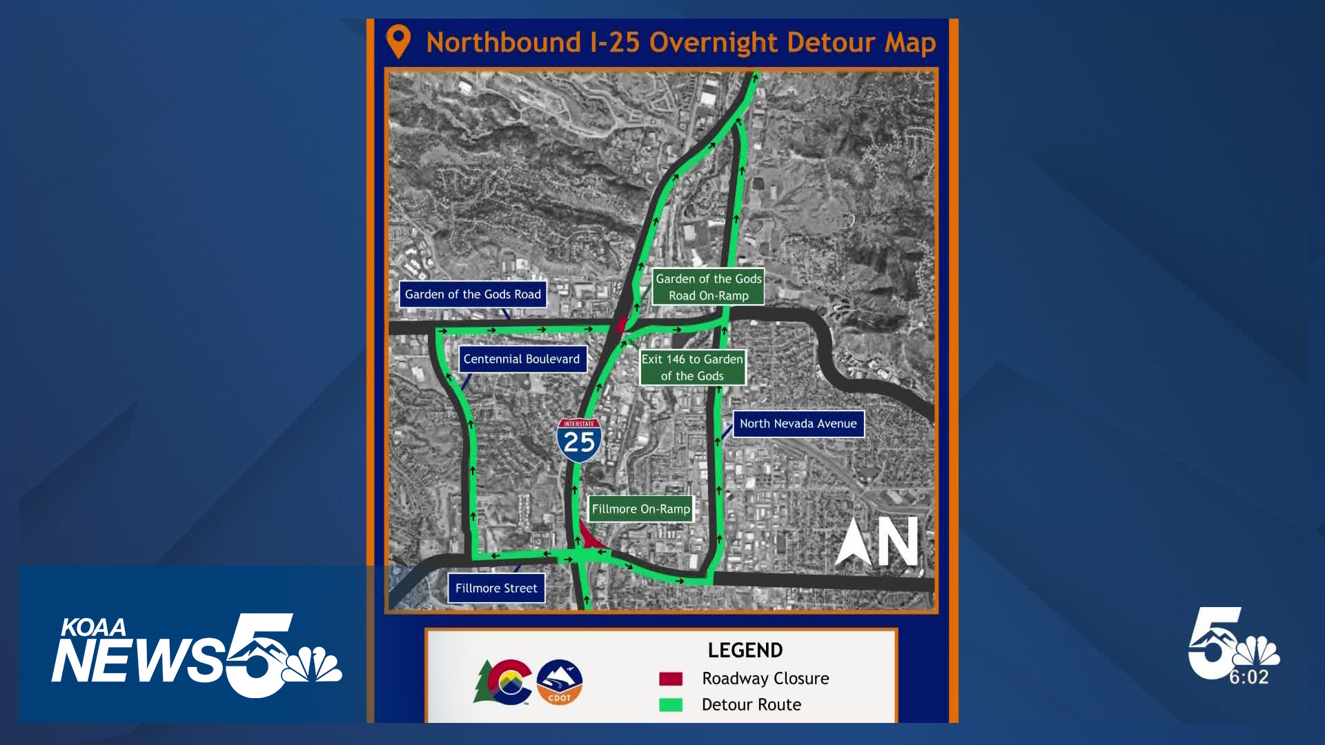 COLORADO SPRINGS, Colo. (KOAA) — Motorists can expect lane closures along northbound I-25 between Fillmore Street and Garden of the Gods Road this week.