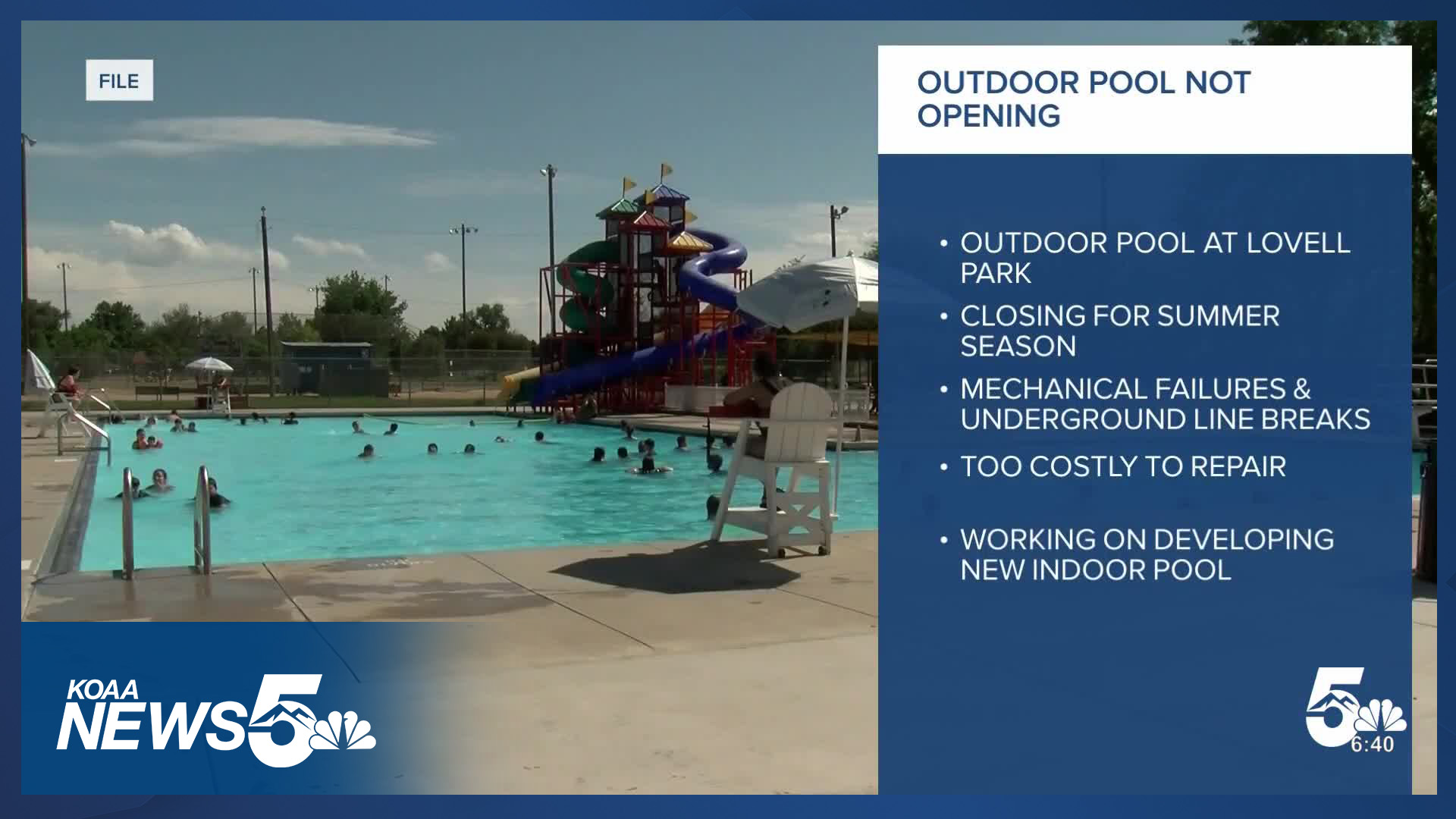 Officials in a Facebook post say the outdoor swimming pool at Lovell Park has had significant mechanical failures and major underground line breaks.