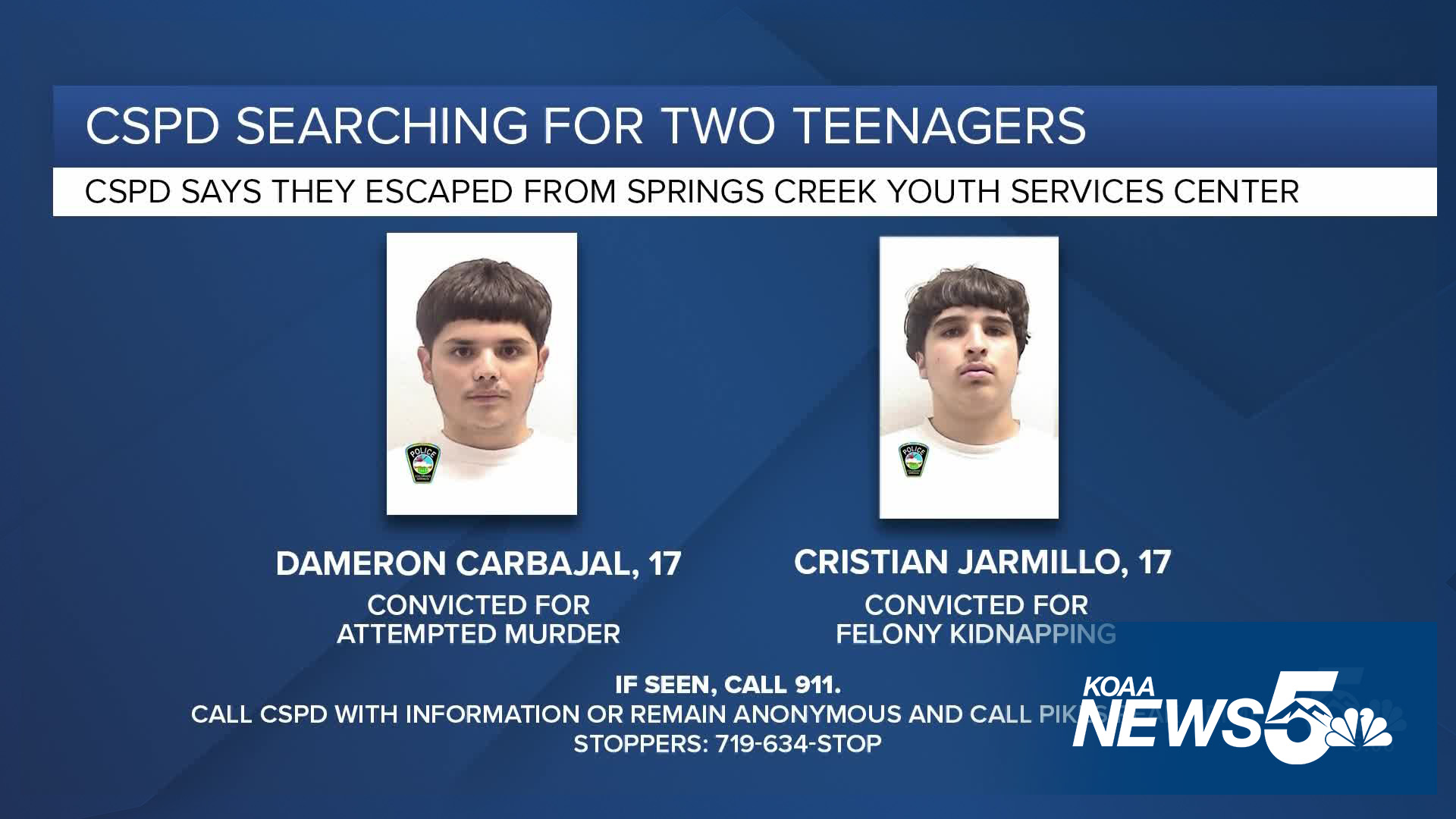 According to the Colorado Springs Police Department (CSPD), Carbajal is serving a five year sentence for being adjudicated/convicted for attempted murder out of Pueblo County.