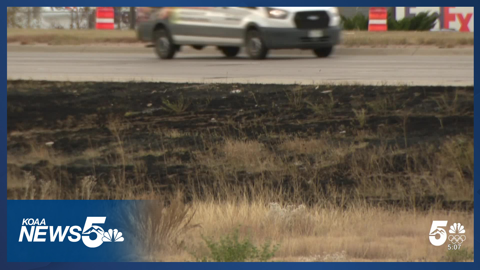 COLORADO SPRINGS, Colo. (KOAA) — Multiple agencies responded to multiple small grass fires burning along Powers Boulevard near Platte Avenue on Tuesday morning.