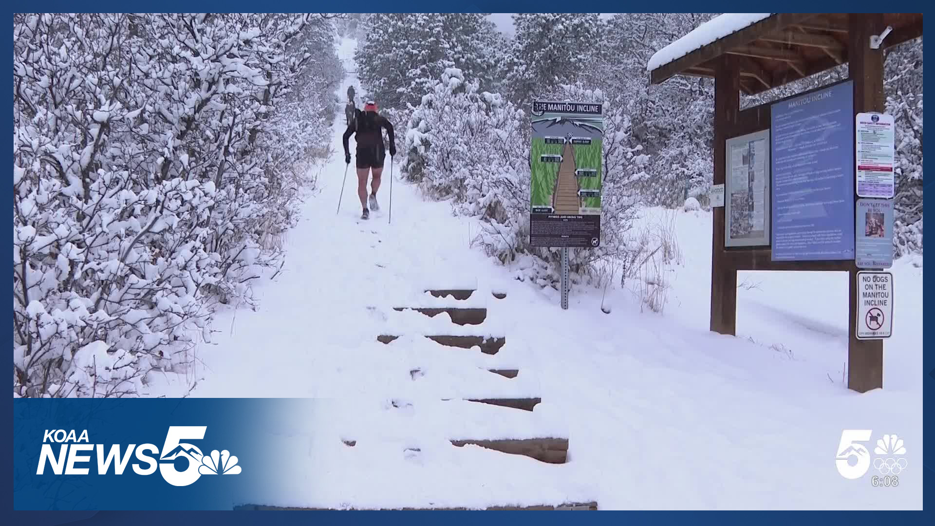 MANITOU SPRINGS, Colo. (KOAA) — Hikers and runners aren't letting snow stop them from tackling the challenging 2,768 steps of the Manitou Incline in Colorado Springs. Despite icy conditions and powdery white snow covering the wooden steps, outdoor enthusiasts continue to make their way up the steep trail.
