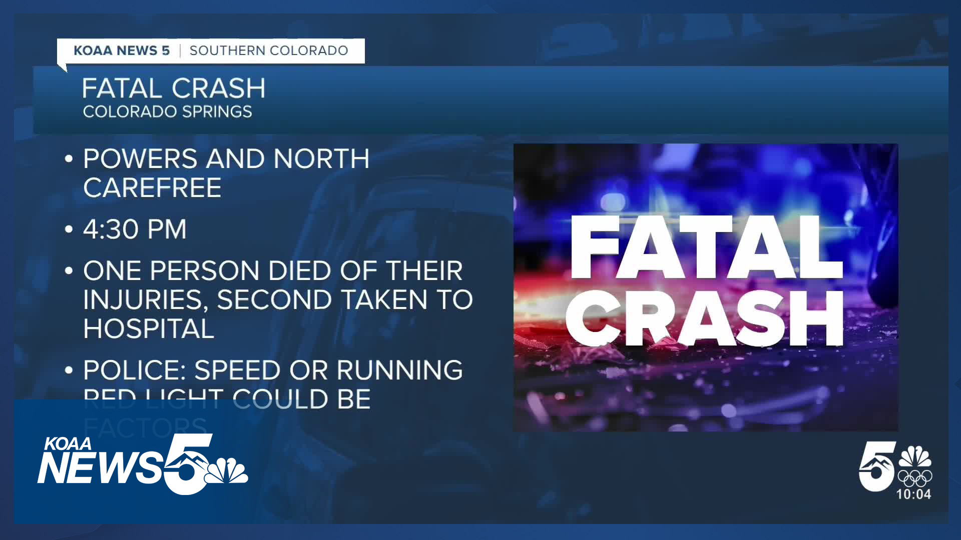 The cause of the crash is under investigation, however, CSPD says speed and running a red light are being considered as factors.