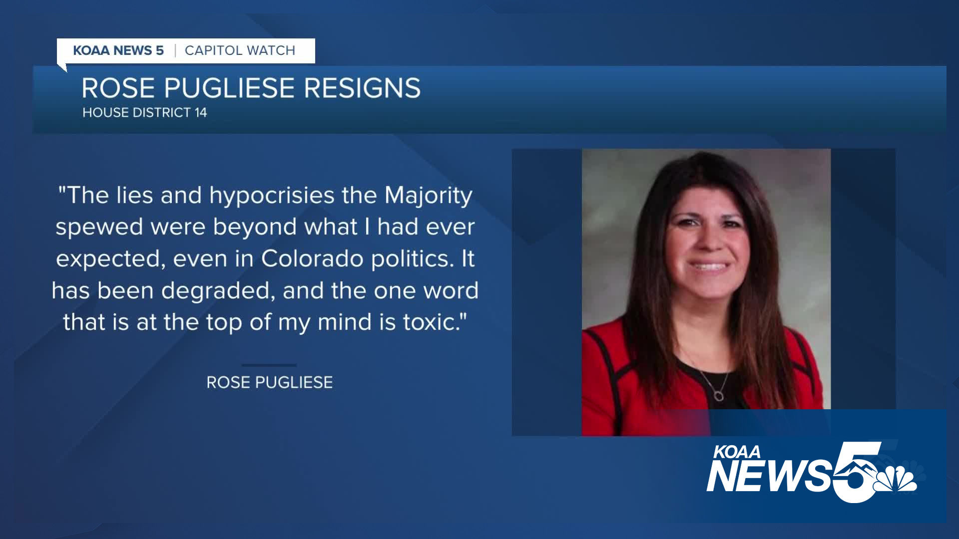 EL PASO COUNTY, Colo. — Colorado House Minority Leader Rose Pugliese of Colorado Springs announced her resignation Sunday evening, effective Monday, Sept. 15.