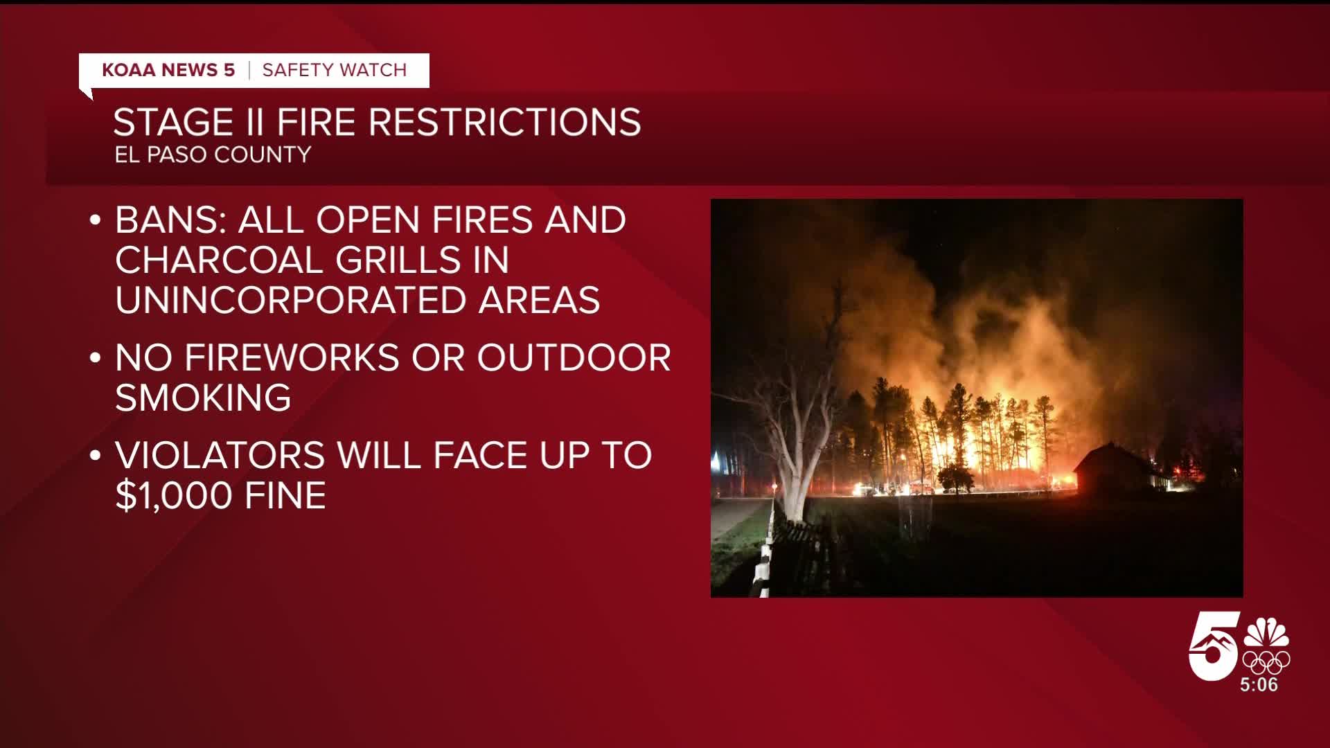 EL PASO COUNTY, Colo. (KOAA) — The El Paso County Sheriff's Office has announced unincorporated areas of the county are now under Stage II Fire Restrictions.