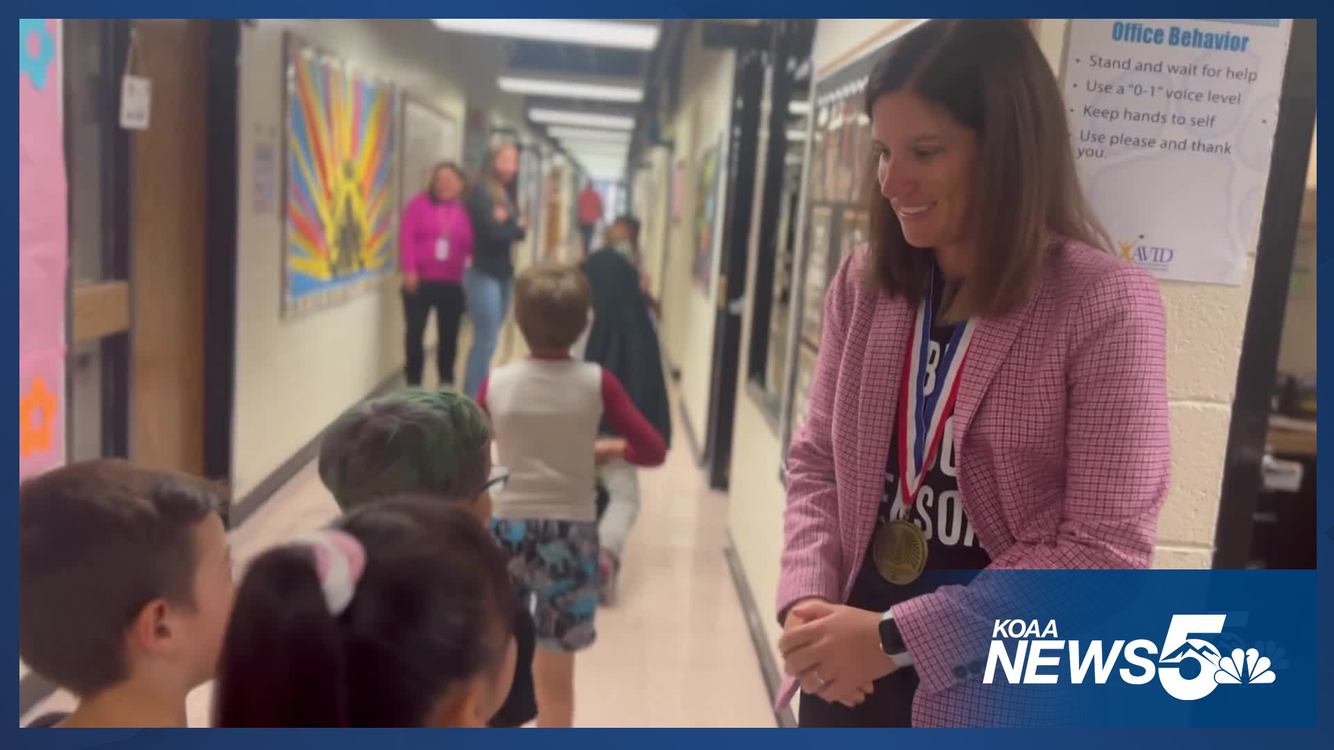 PUEBLO, CO — It's easy to see how much the more than 240 students and staff members at Minnequa Elementary school love their principal Katie Harshman. Seconds after I present to her the News 5 Lighthouse Award for helping to make her community better, the school erupts in cheers. Balloons and handmade posters of praise fly up into the air. Harshman uses the moment for a lesson in love, calling on students to listen closely.