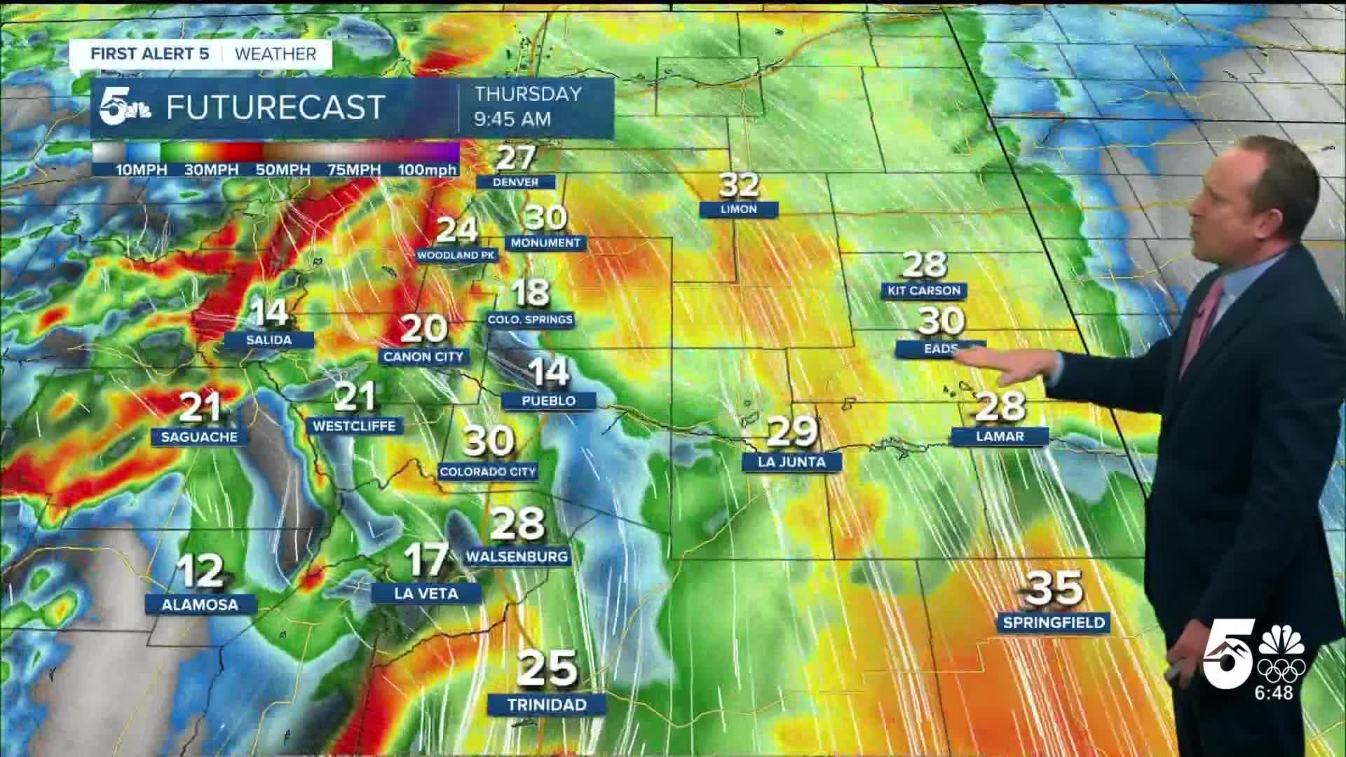 Breezy to gusty on Thursday ahead of a spring-like weekend for Colorado