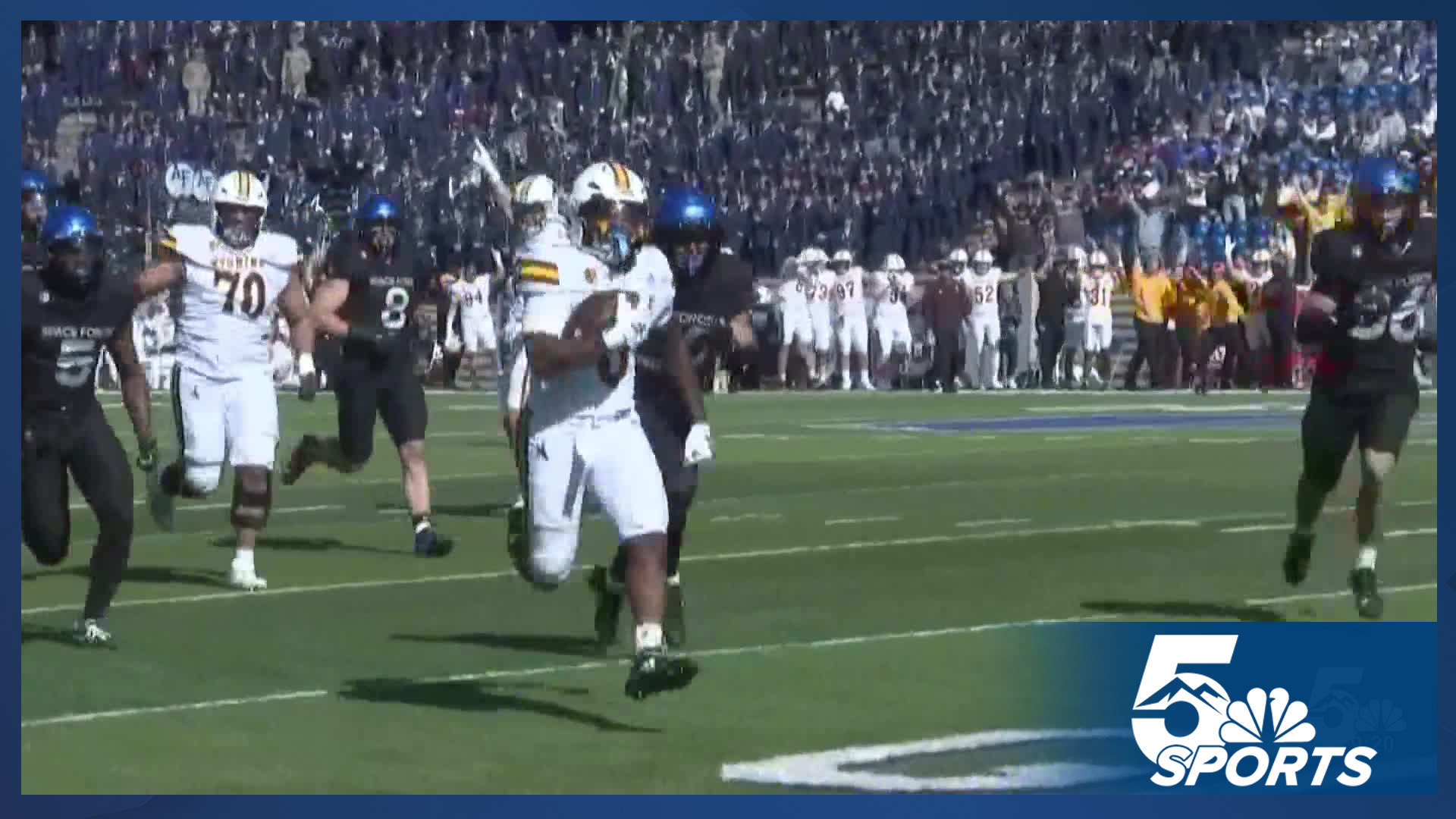 Falcons drove down the field and were faced with a fourth and one from the Wyoming 9-yard line. Instead of kicking a field goal to go up three, coach Calhoun made another gutsy call that paid off. They went for it on fourth down, and Frew scored a go-ahead touchdown with just over 5 minutes remaining in the game.