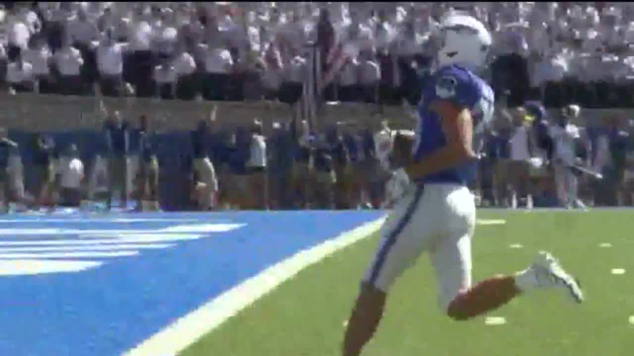 The Falcons started strong, on the first drive QB Haaziq Daniels found Dane Kinamon down field for an 80-yard touchdown. Daniels finished the day with 216 total yards and two touchdowns.