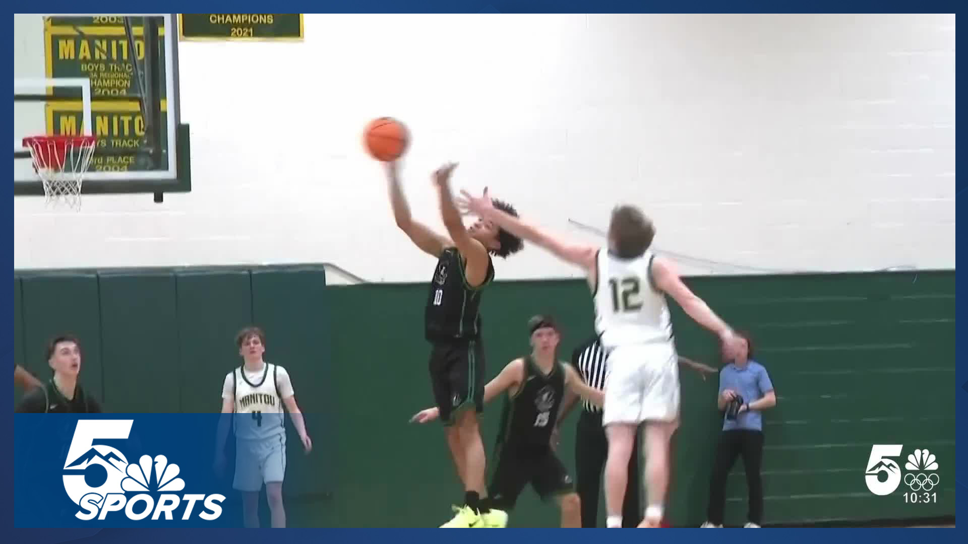 Dawson put St Mary’s back in the lead after spinning his way into an and-one, giving them a 69-66 lead. With less than a minute to play and still trailing by three, Manitou Springs got a defensive stop and would have had a chance to score if not for the defensive effort by Stewart.