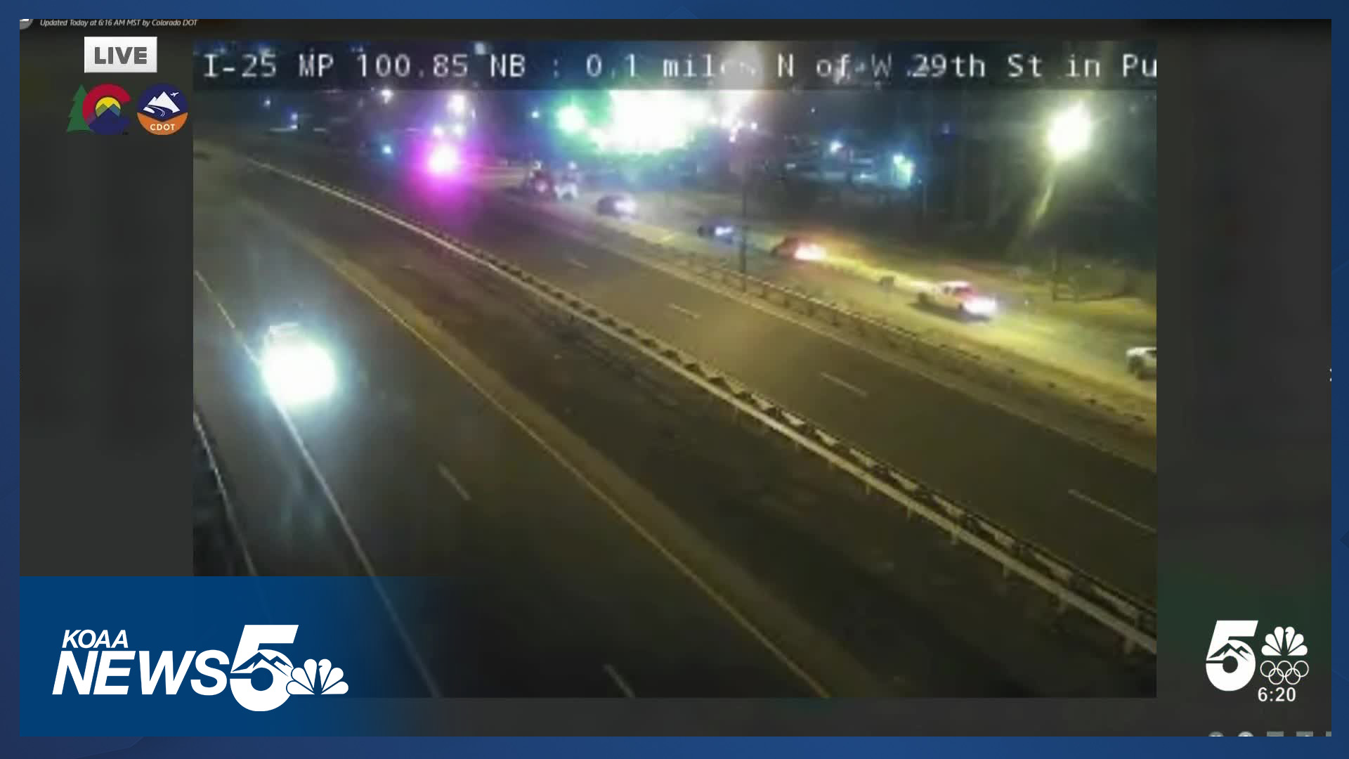 A spokesperson with the Pueblo Police Department confirmed with News5 that this crash involved a pedestrian but did not go into detail about how it occurred. The investigation is ongoing, and the section of I-25 remains closed as of 7:30 a.m. between Exit 102 - Eagleridge Boulevard and Exit 99A - CO 96; 6th Street.
