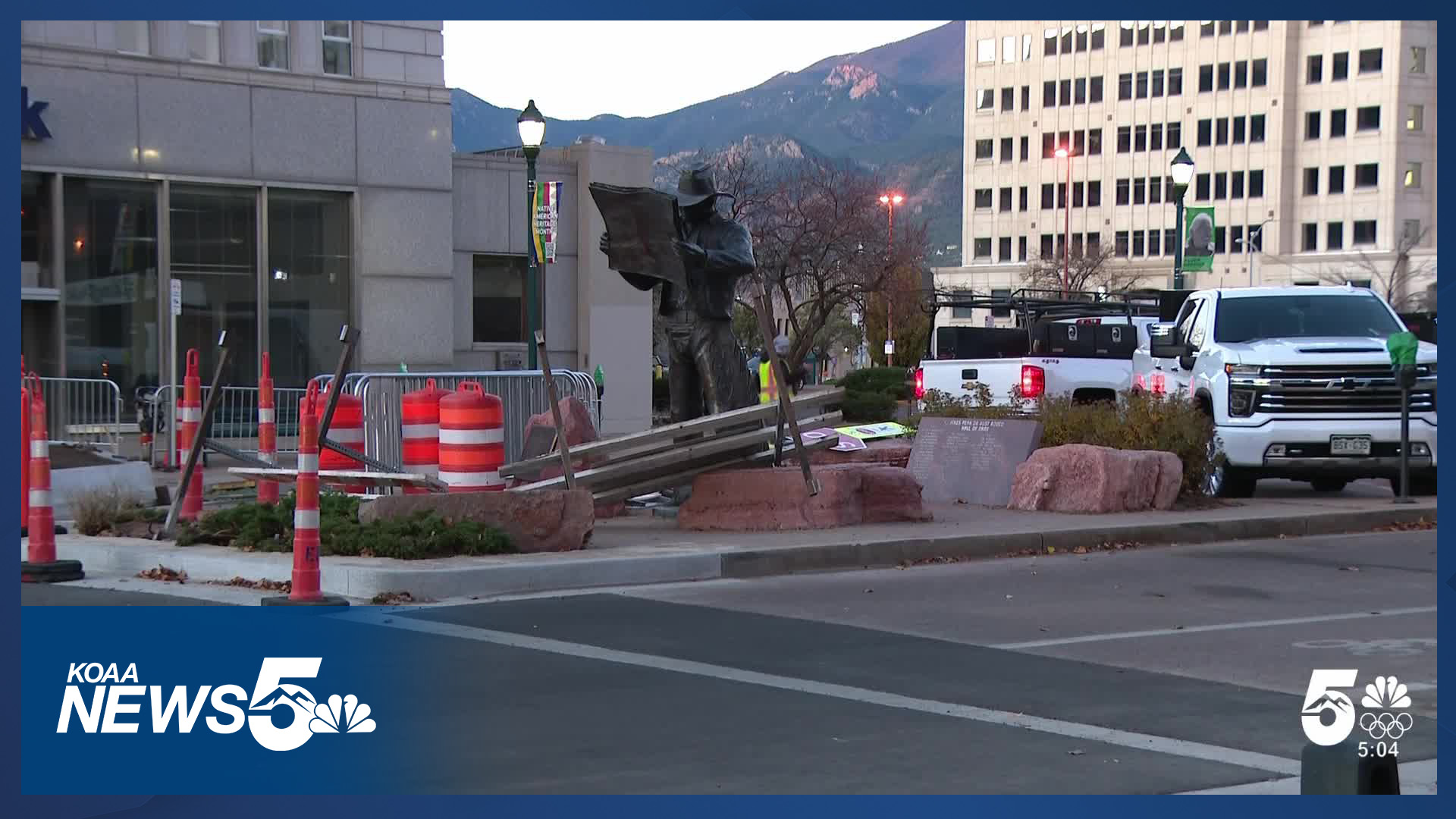 The city says eastbound and westbound Pikes Peak Avenue at Tejon Street will also be closed intermittently while crews wrap up at the "Busy Corner."
