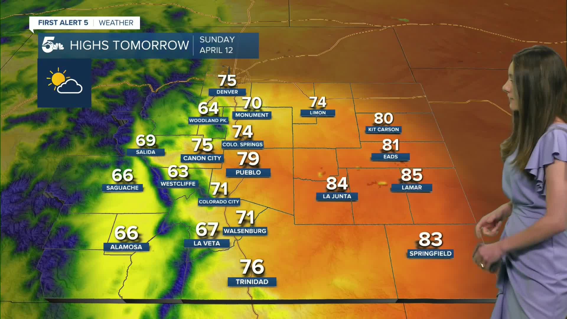 The southern I-25 corridor will have morning temperatures in the mid-to-lower 40s. The morning looks to start off with mostly clear conditions, but there will still be some clouds during the day. Afternoon highs will be in the lower-to-mid 70s. Red flag warnings will be in place until 9PM.