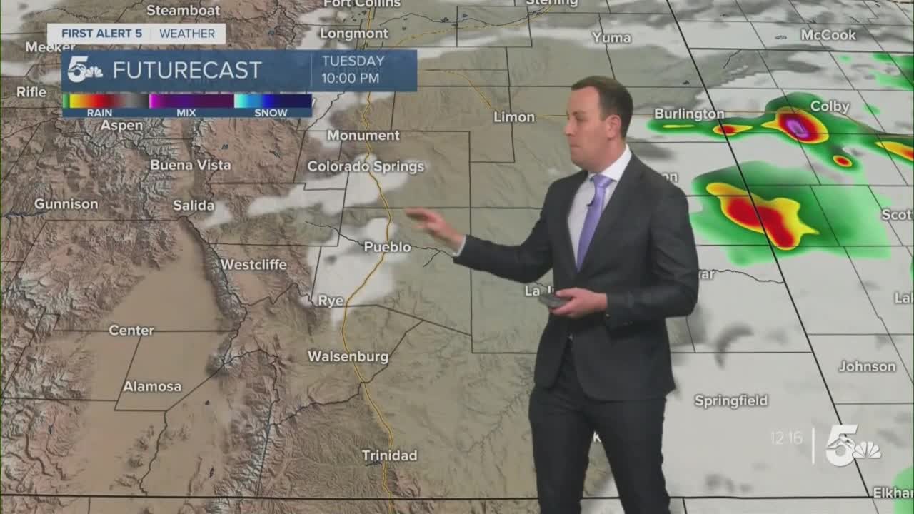 Storms will start over the mountains, Palmer Divide, and Raton Mesa in the early afternoon before they push east across the plains and grow in strength.