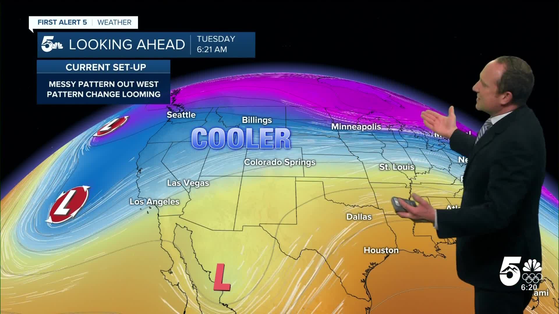 Tri-Lakes forecast: High: 40s; Low: 20s. After an unseasonably warm Monday, highs today will be around 20-25 degrees cooler over northern El Paso County. Snow is not expected here until later this week.