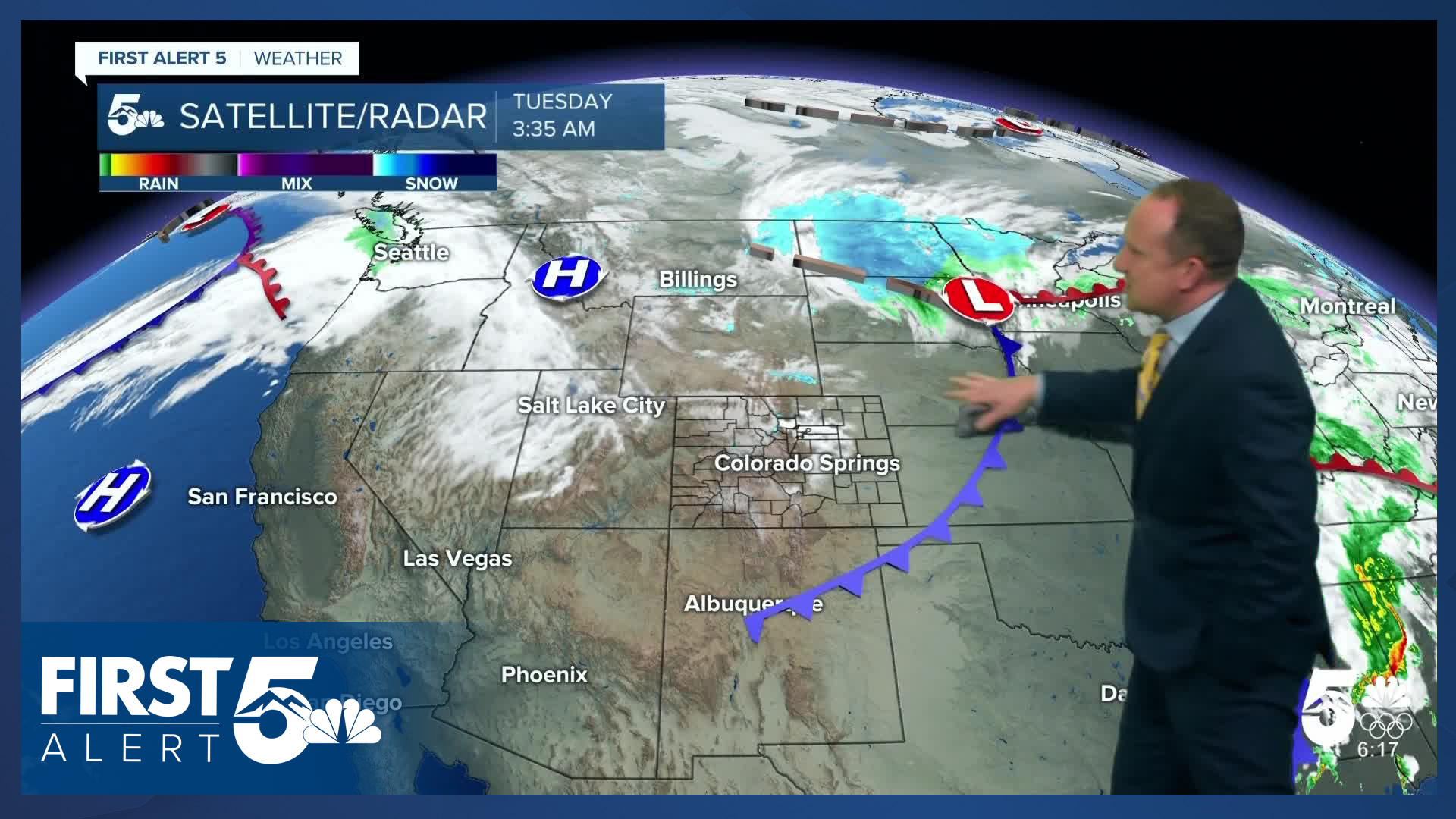 Highs today warm into the upper 30s to lower 40s in the Pikes Peak Region depending on elevation - so keep the jacket and gloves handy. Today's average high is 49 in Colorado Springs.