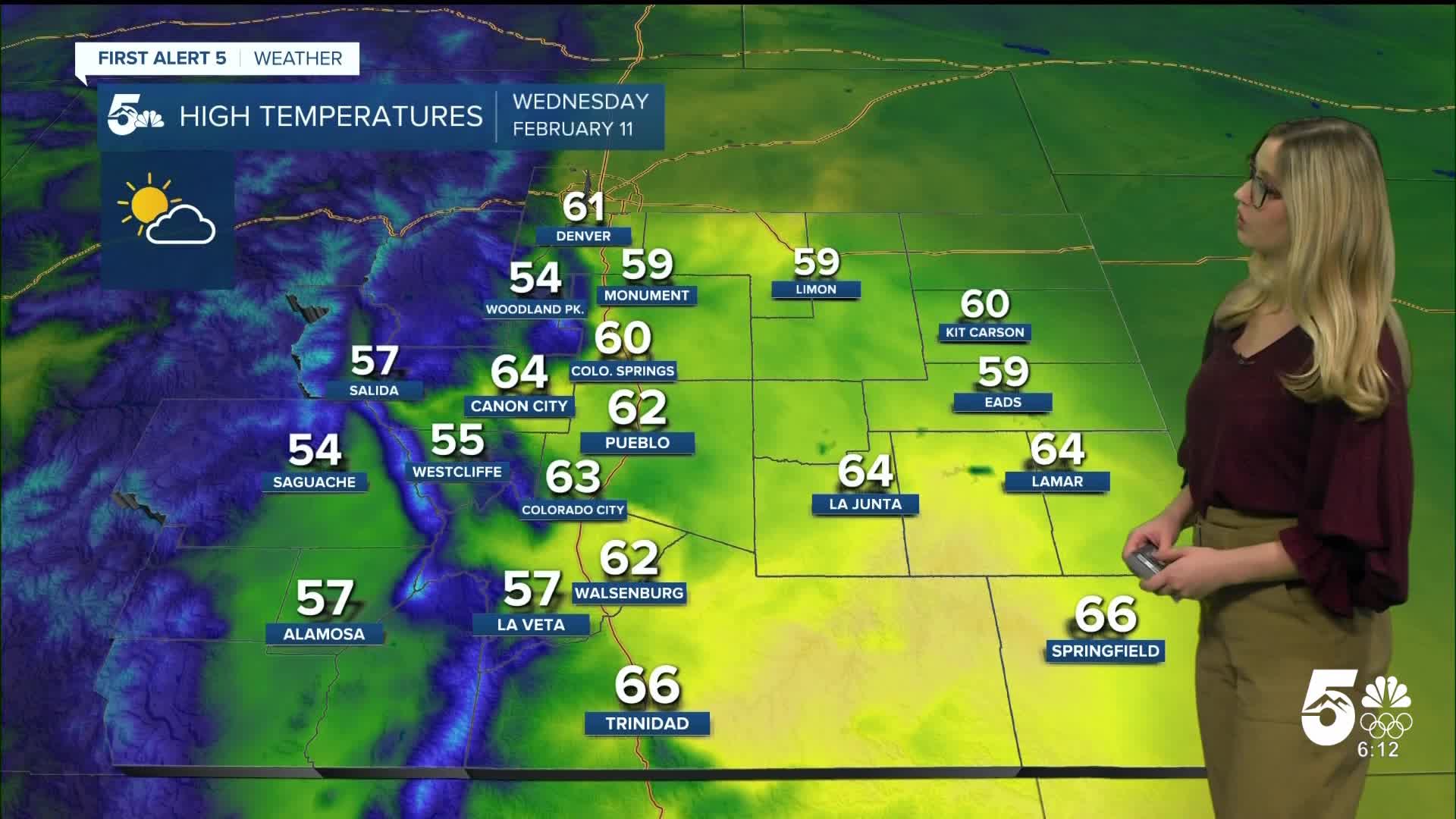 Walsenburg and Trinidad forecast: Low: 27/30; High: 62/66;