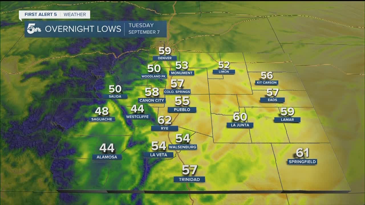 PUEBLO: Low: 55; High: 93. Cooler than Labor Day, but still a hot and hazy day on Tuesday as we return to work and school after the long holiday weekend.
