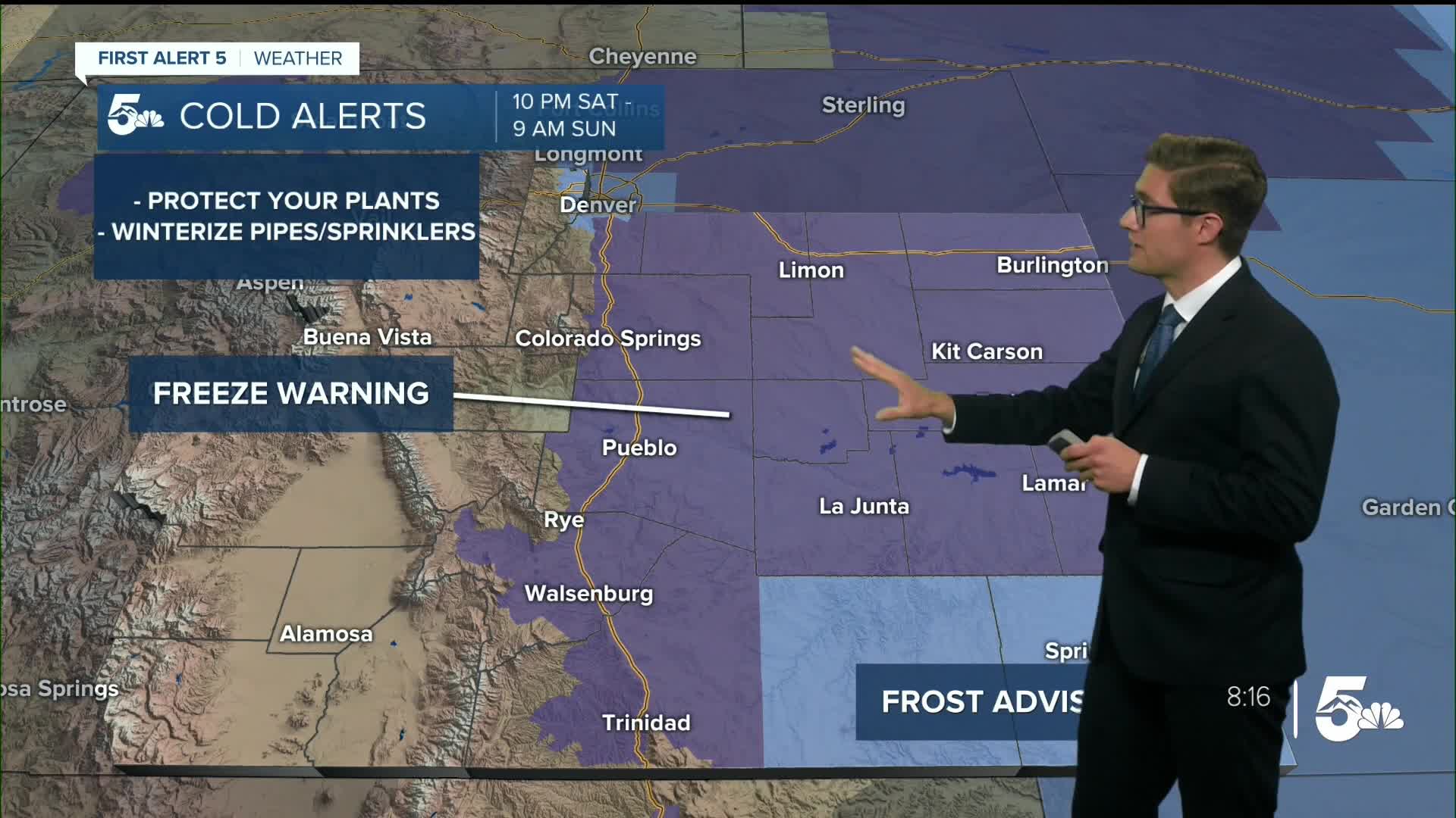 A Freeze Warning is in effect tonight from 10 PM - 9 AM for the southeastern plains outside of Baca and E. Las Animas counties. Protect or bring inside any sensitive plants, and ensure your pipes and sprinklers are winterized.