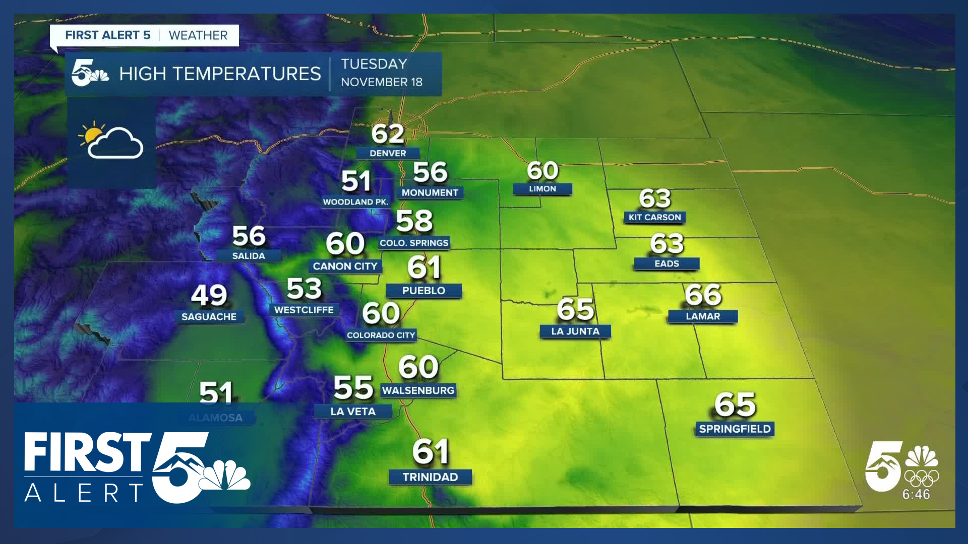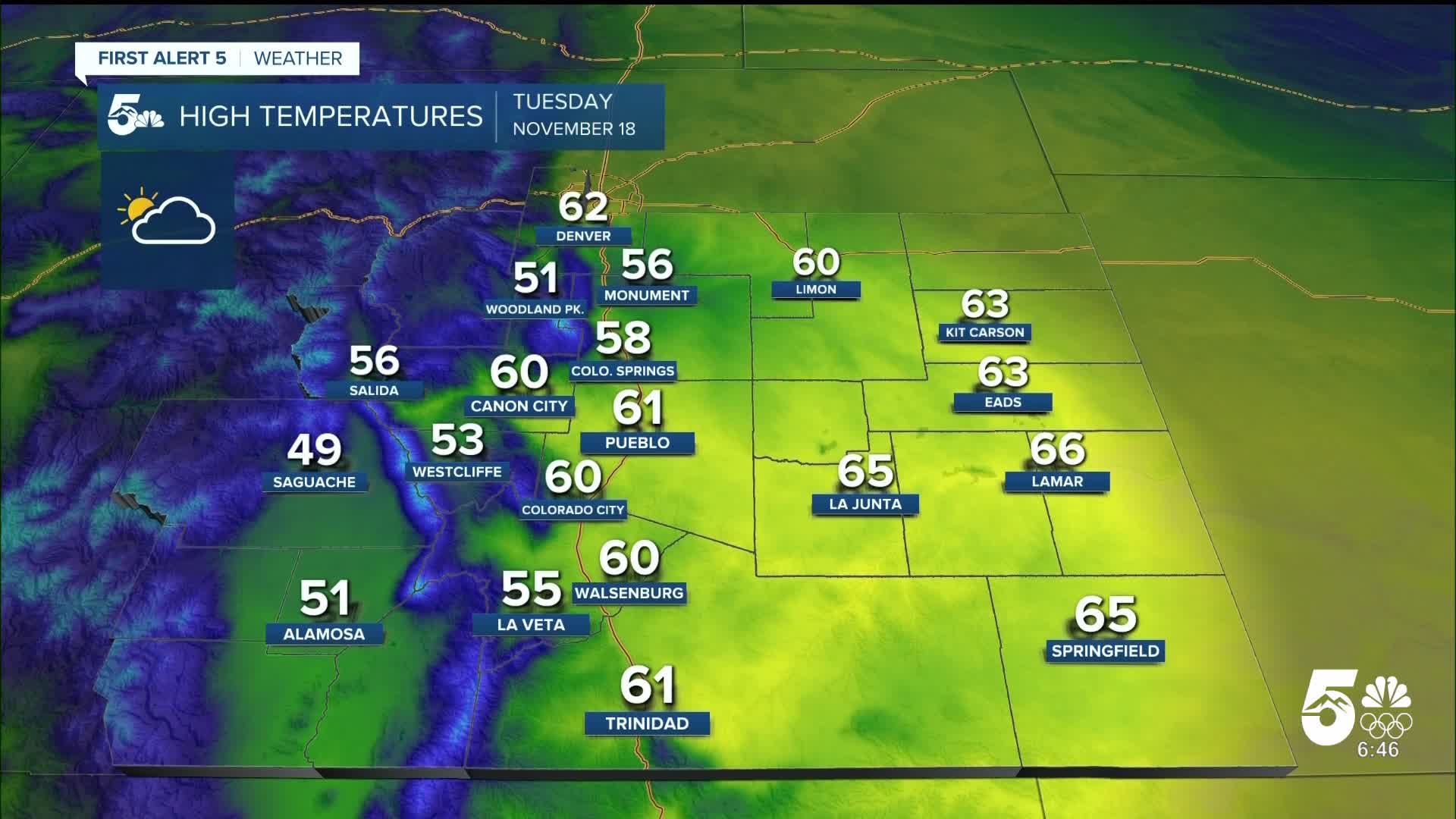Pueblo forecast: Low: 31; High: 61;