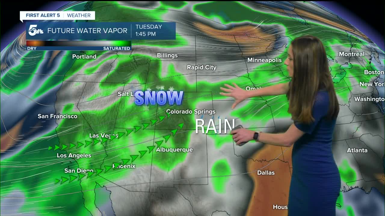 A surge of moisture arrives by Tuesday, and rain chances will pick up in the afternoon and evening. This will transition over to a mix for the lower elevations overnight into Wednesday. Snow will spread across the mountains. Colorado just loves to shake things up for us in the forecast. Wednesday will be a rainy day for the Pikes Peak Region and parts of I-25. We will have more dry air move in on Thursday, and more sunshine will be in the forecast. Still tracking some leftover moisture though on Friday and there is a small chance for some showers.