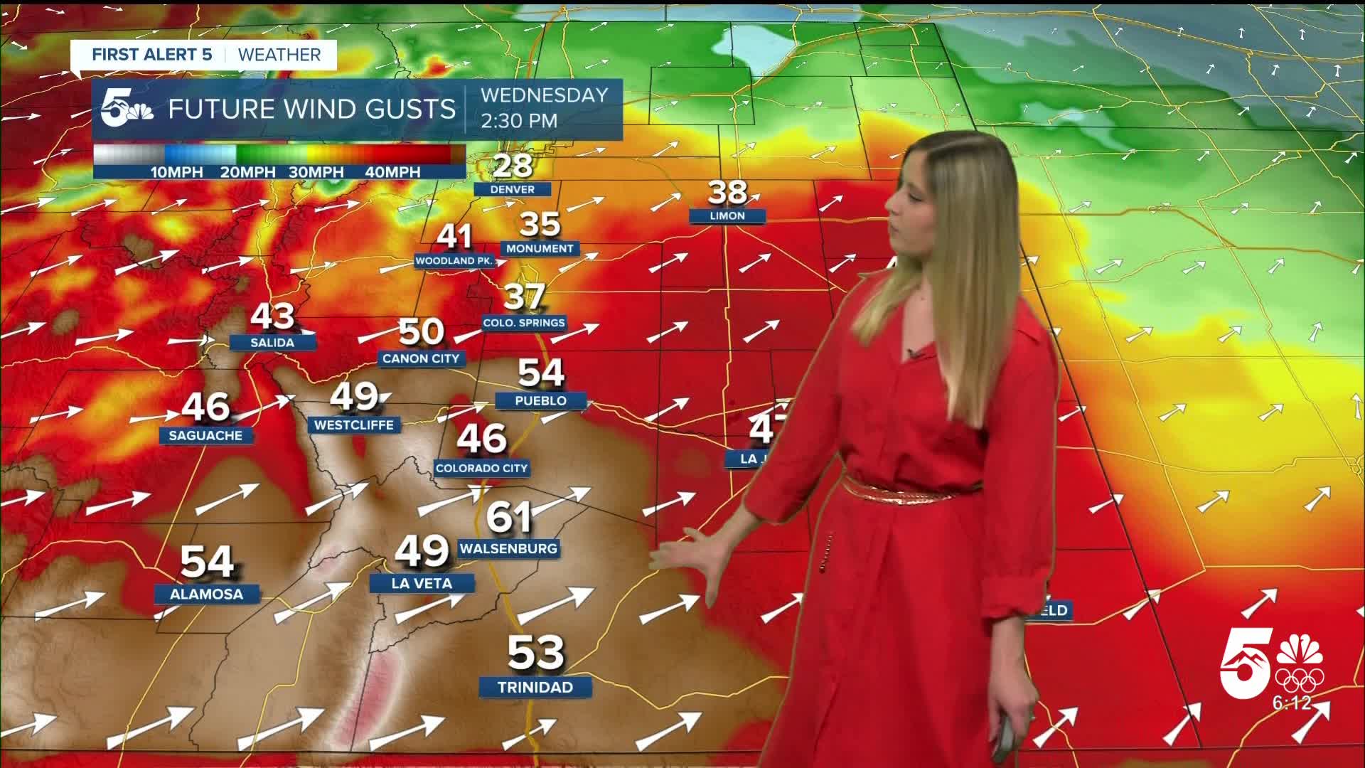 Wednesday remains gusty with WSW wind at 15 mph gusting to 40 mph. The sky will be partly cloudy.