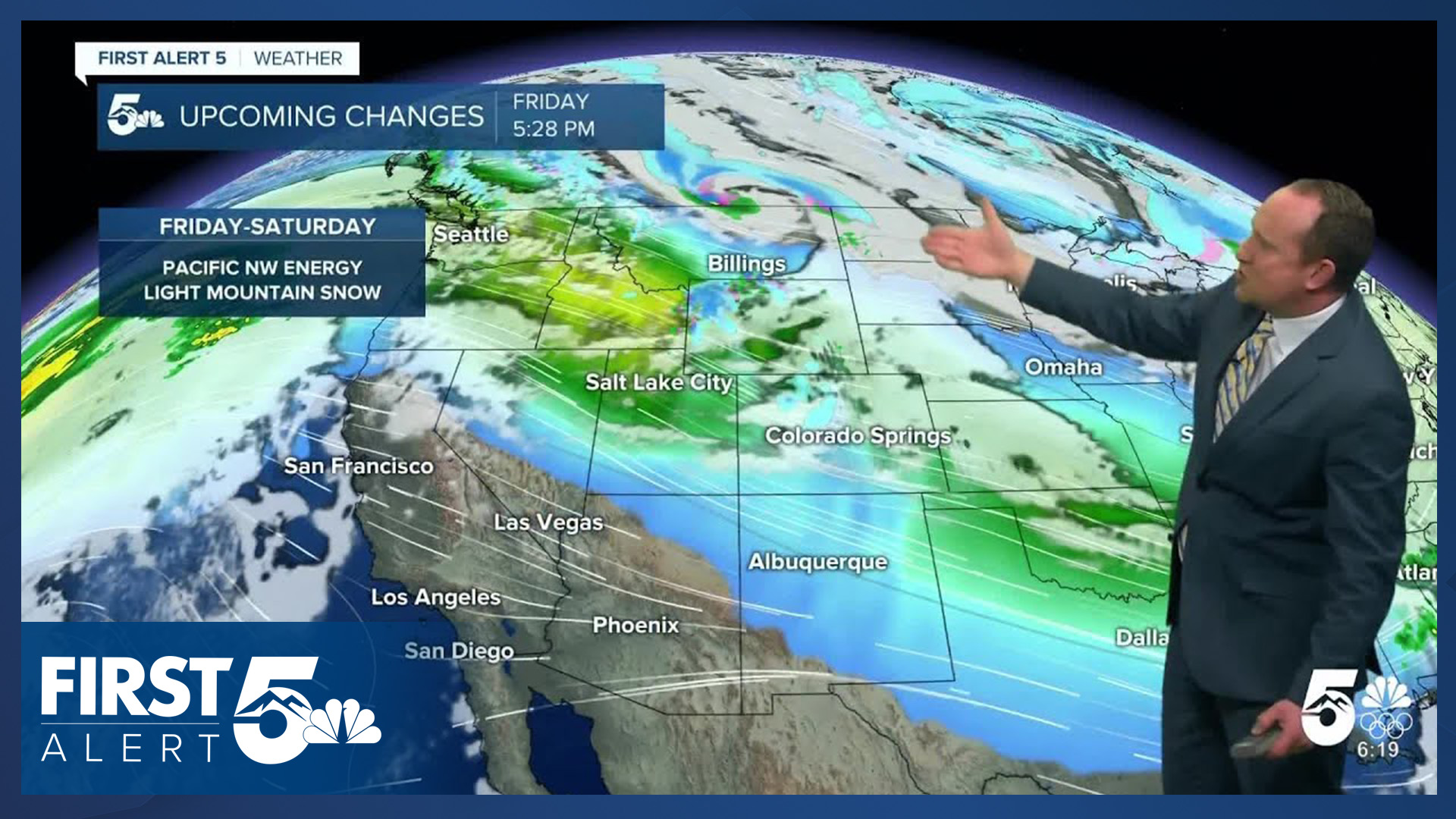 Colorado Springs forecast: High: 59; Low: 32. Cooler temperatures will return to the Pikes Peak Region on Friday as highs cool from the 70s that we saw on Thursday to the upper 50s this afternoon.