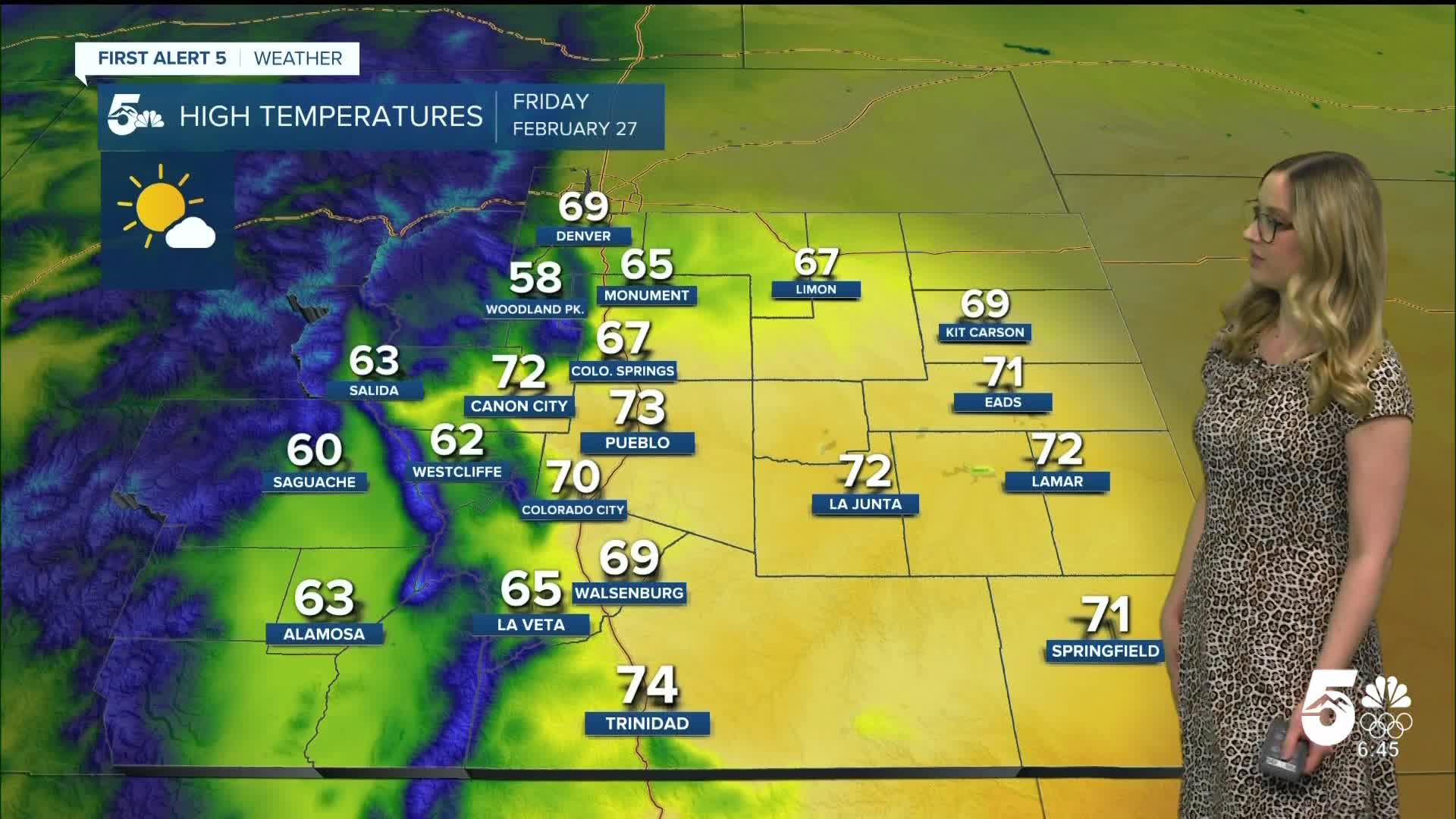Walsenburg and Trinidad forecast: Low: 37/35; High: 69/74;