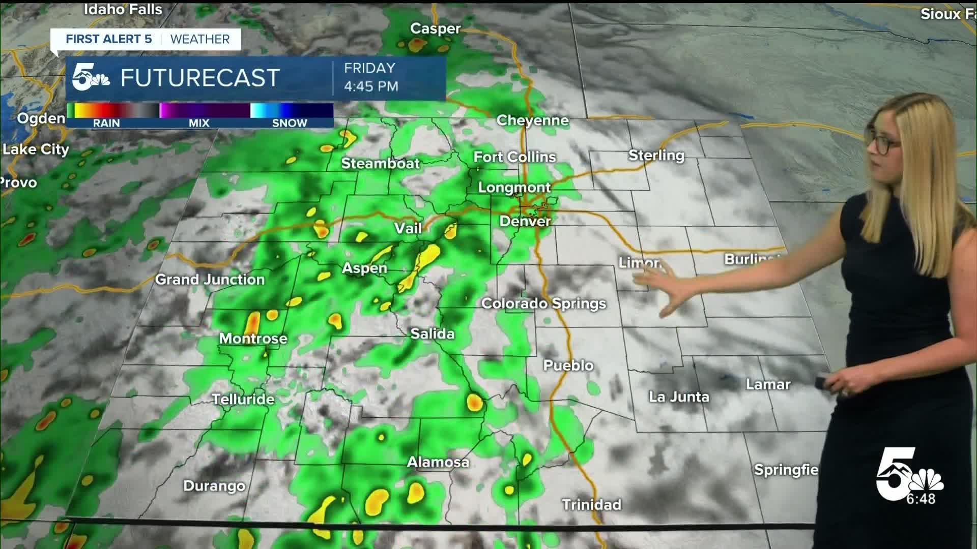 It will be mostly cloudy with spotty rain showers on Friday. The rain will be heaviest and most consistent west of the Continental Divide. Temperatures will be mild.