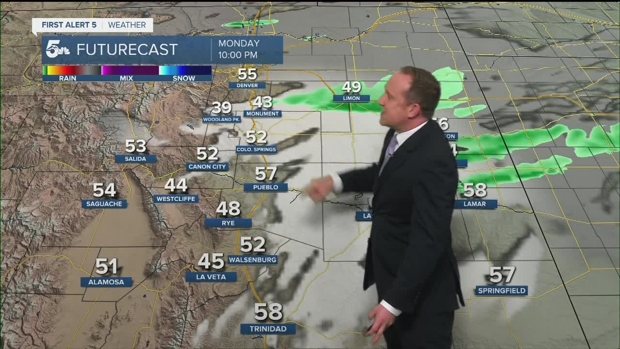 COLORADO SPRINGS: High: 69; Low: 41. Staying breezy all day with temperatures about 10 degrees below average. Light rain showers are possible later this afternoon.
